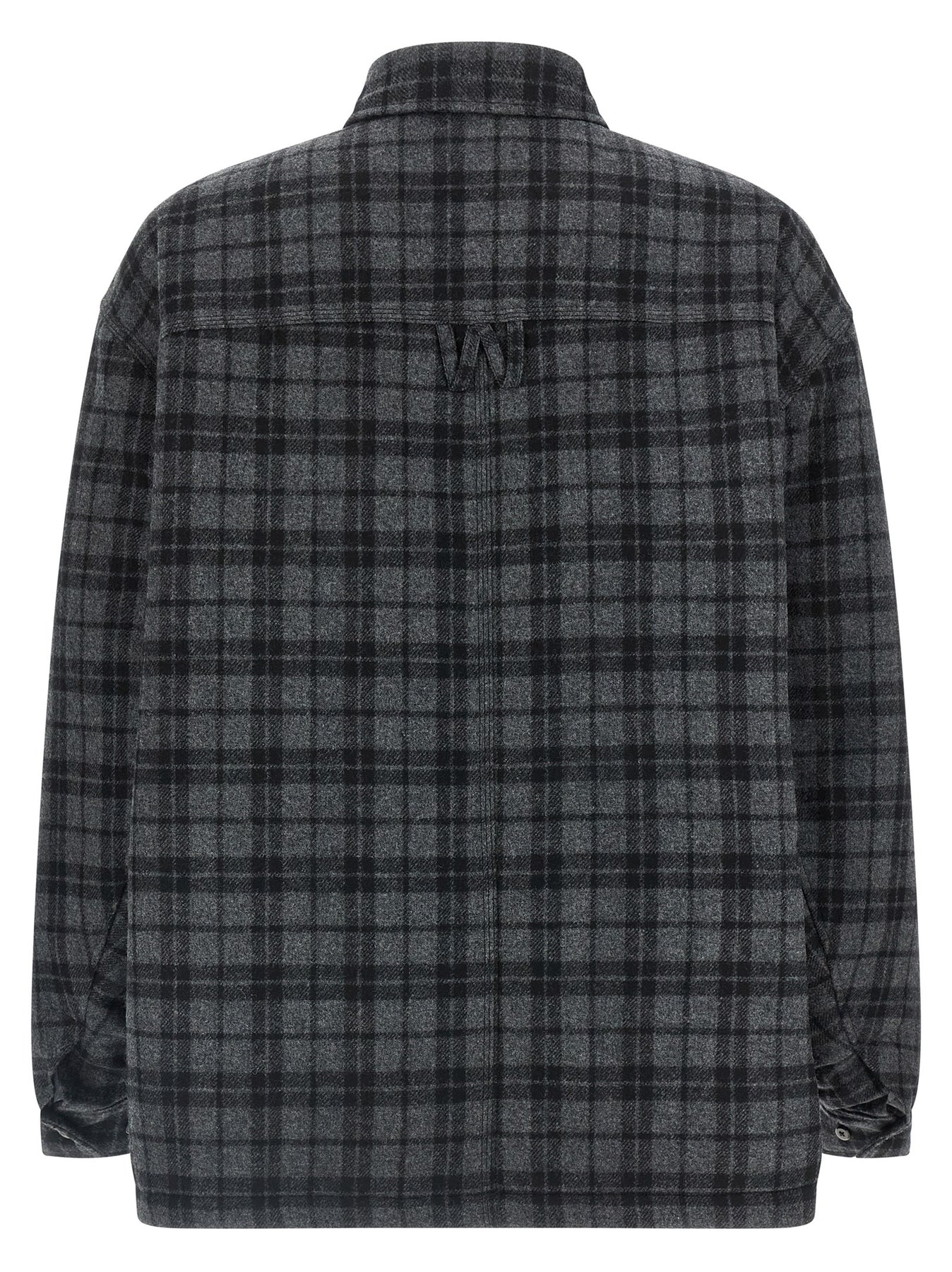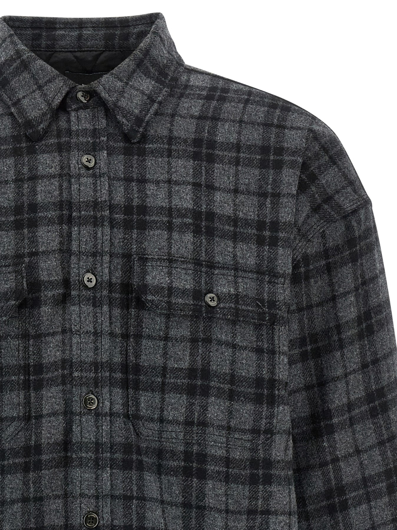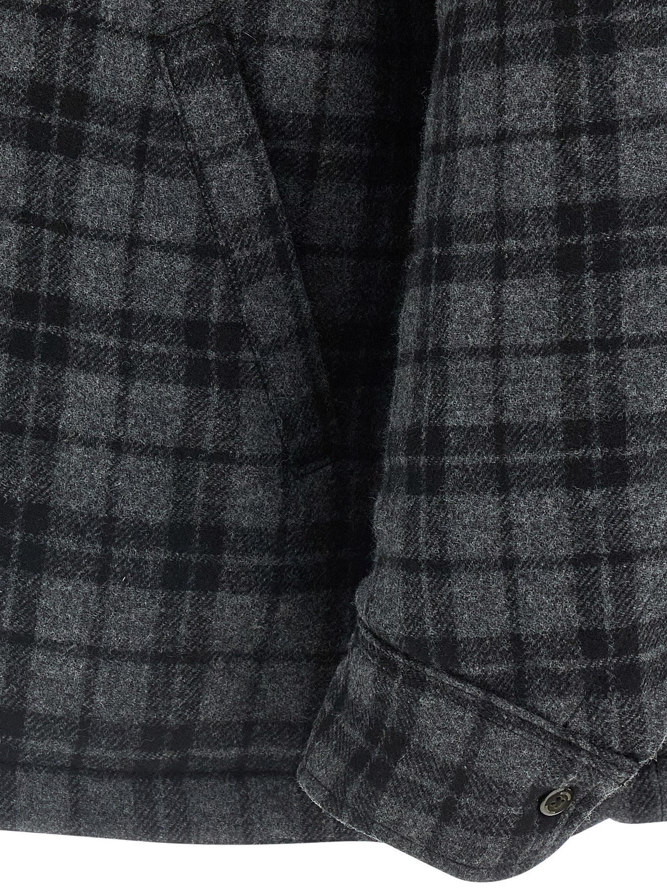 Check patterned wool overshirt, quilted and padded viscose lining, front button closure, pockets, long sleeves with cuffs and dropped shoulders.