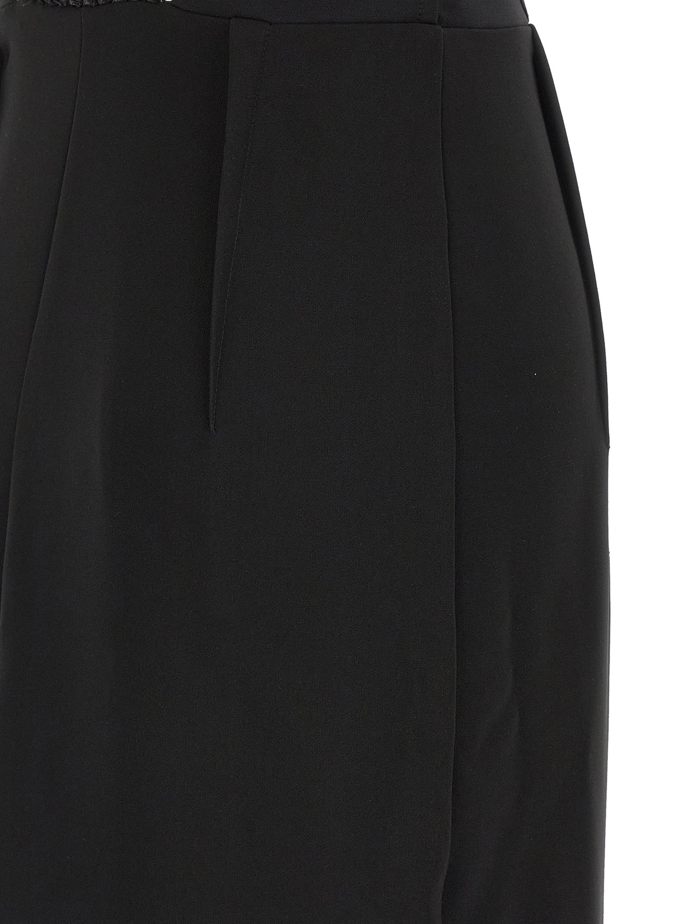 'Red Carpet' long dress in lightweight crêpe consisting of top with rowing neckline in tulle embroidered with crystals, crew neck and bustier with cut-out details and adjustable patent leather straps at the back, side zip closure, sleeveless, wide back split, monogram satin lining.