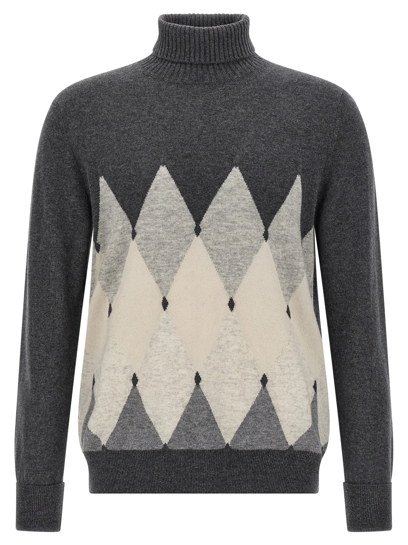 Argyle Turtleneck Sweaters And Cardigans Gray