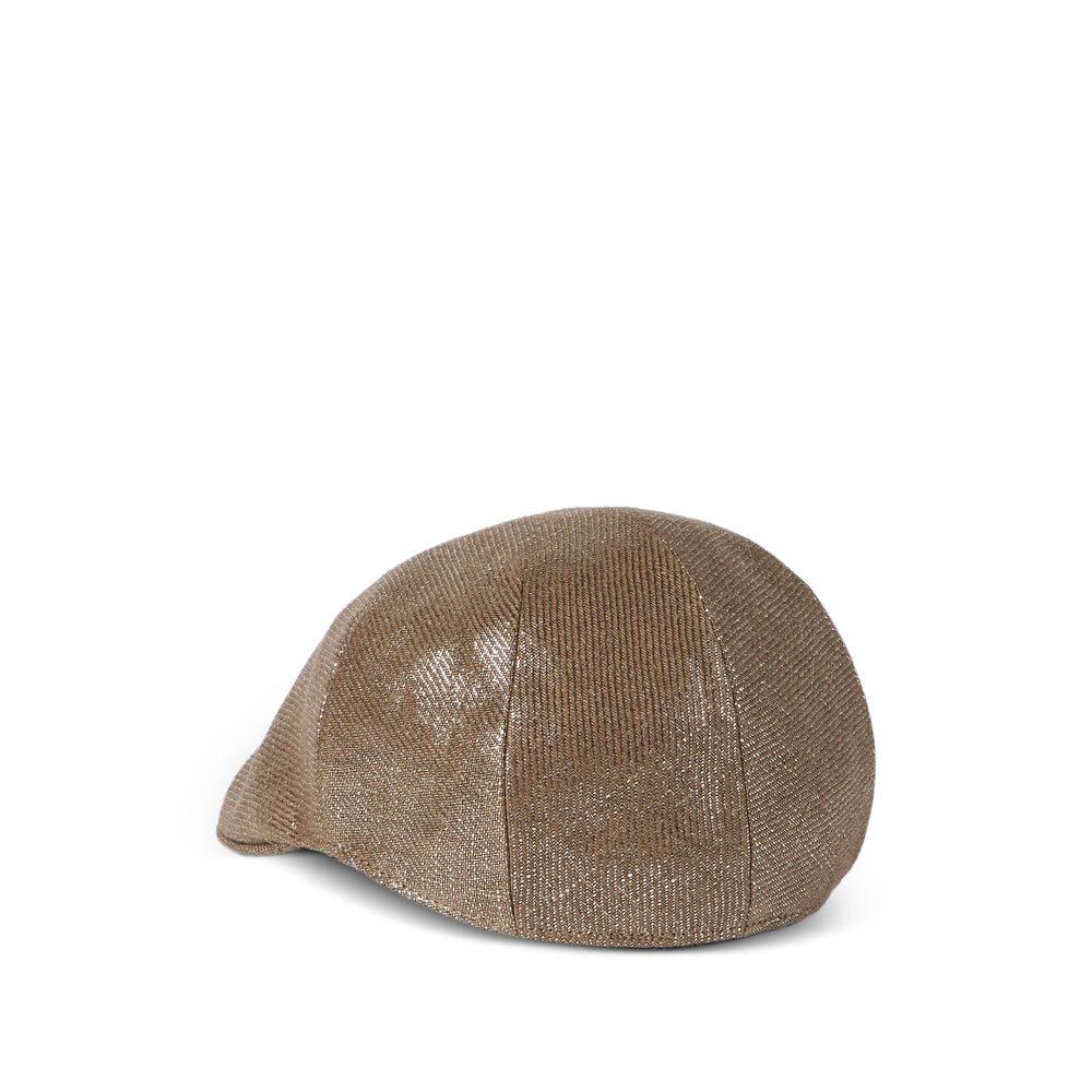 brown linen shimmering finish flat peak slip-on style