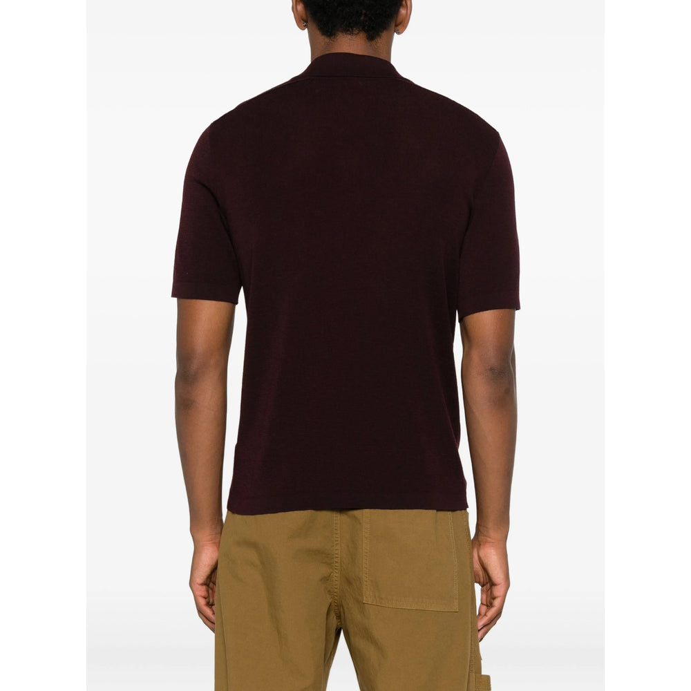 maroon red short sleeves polo collar button fastening knitted construction ribbed trim cotton