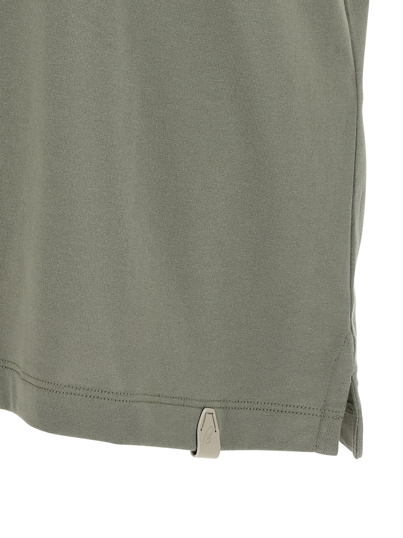 Carbonated cotton T-shirt, tone-on-tone leather fly with front embossed logo, crew neck, short sleeves, side slits. SUSTAINABLE: This garment contains GOTS certified cotton. The Global Organic Textile Standard (GOTS) is a voluntary standard obtained through independent third-party verification.