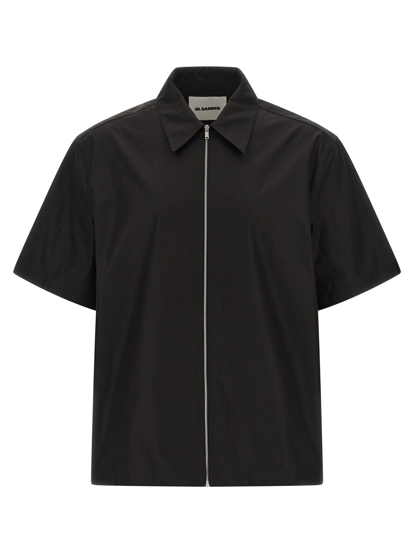 '201' shirt in heavy cotton poplin with pointed collar, front zip closure, short sleeves.
