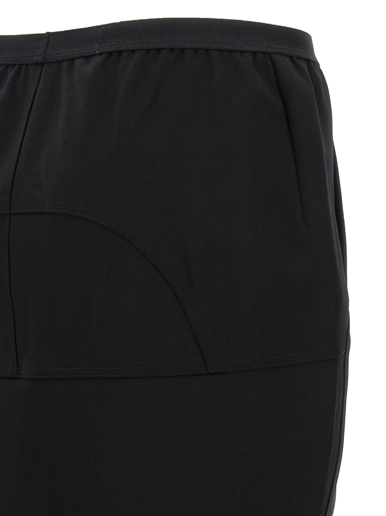 'Soft Pillar Long' skirt in wool blend, elastic waistband, asymmetrical, back split.