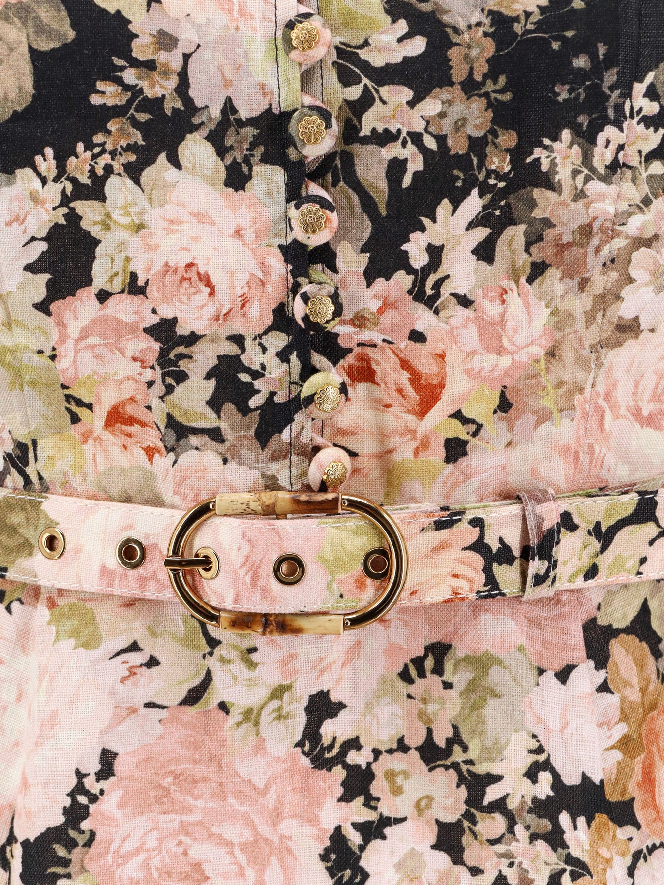 SKU: 9143DF241_BLKRCO - Back closure with zip balloon long sleeve adjustable and removable belt at waist lateral welt pockets 100% linen