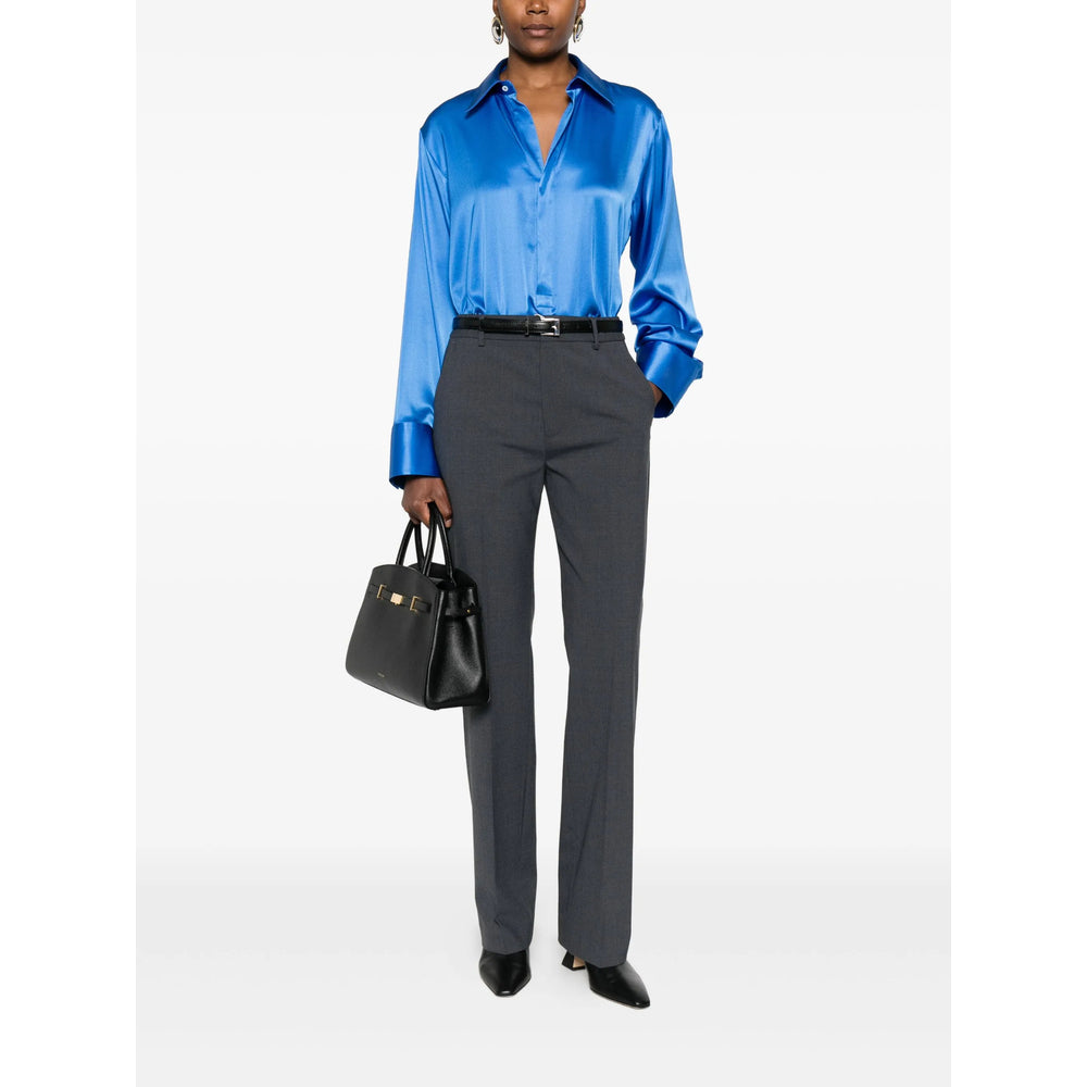 blue point collar long sleeves front button placket straight hem