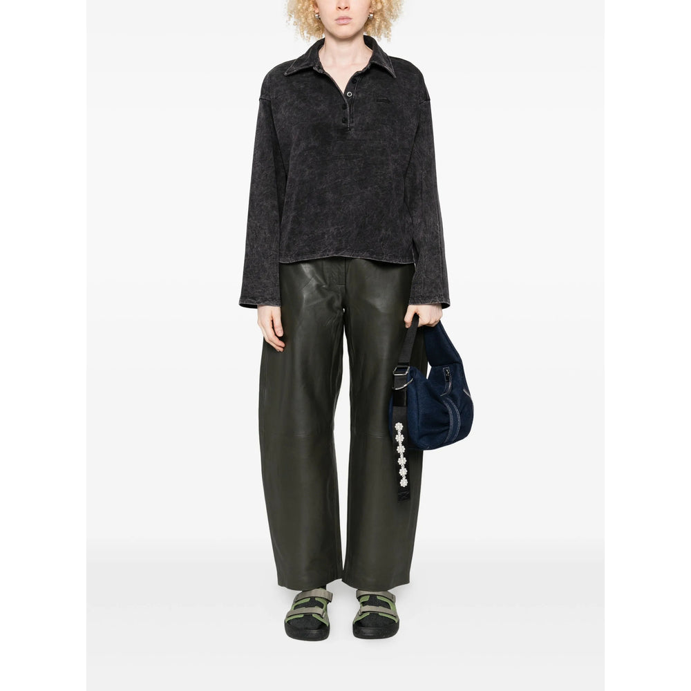 black brown acid wash effect long sleeves button placket collared neckline cotton