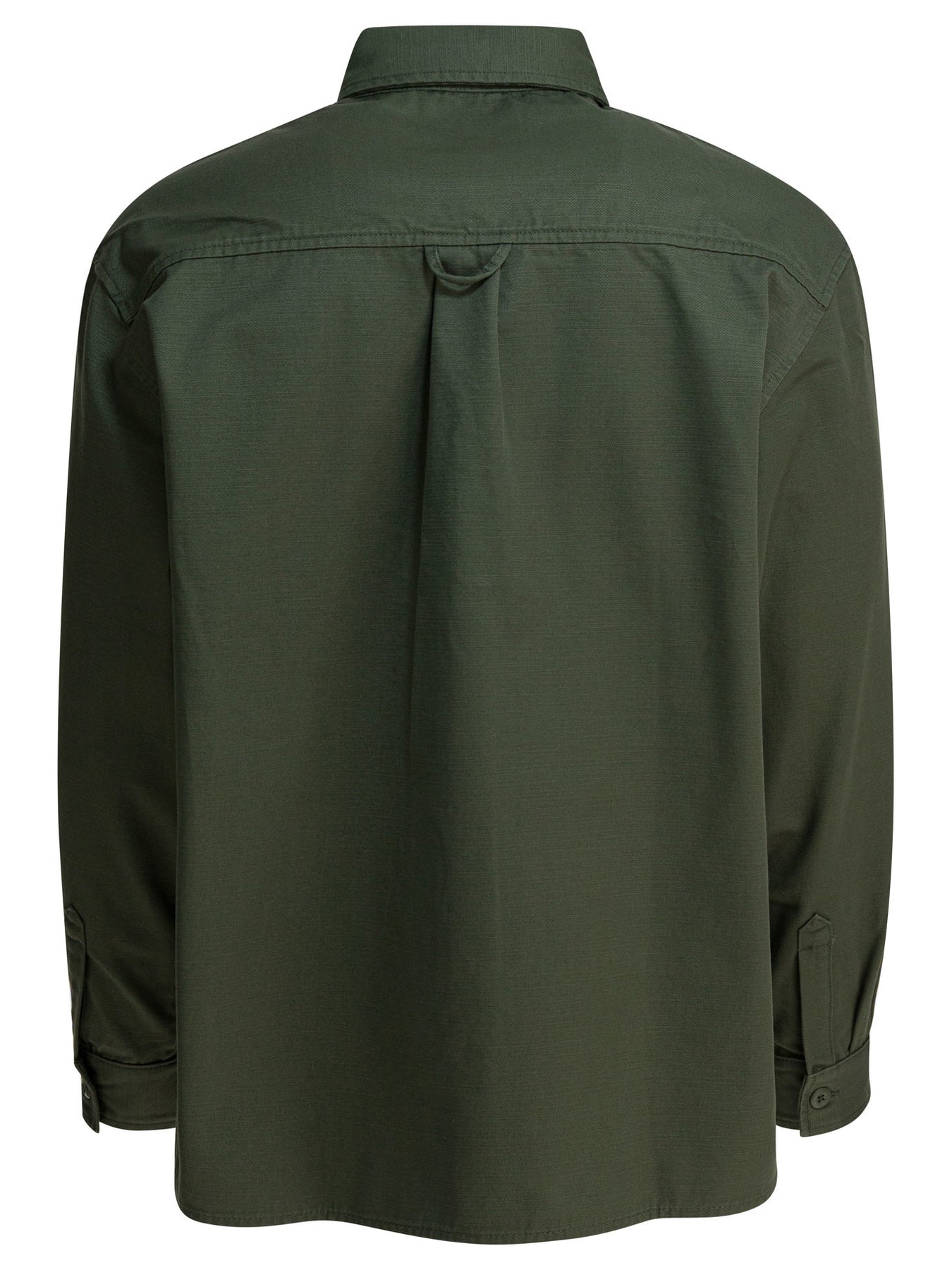 Carhartt WIP "Kelly" overshirt jacket, made of mid-weight cotton twill without lining. The construction features a rigid structure with a classic collar, long sleeves and joist stitching at the points subject to the most wear. The silhouette is basic and straightforward. Front button closure and two patch pockets on the chest. Square fabric label detail completes the design. || - Solid color - Medium-weight cotton twill - Front button closure - Two patch pockets on chest - Rafter stitching at major wear points - Classic collar - Long sleeves - Square fabric label - Regular fit