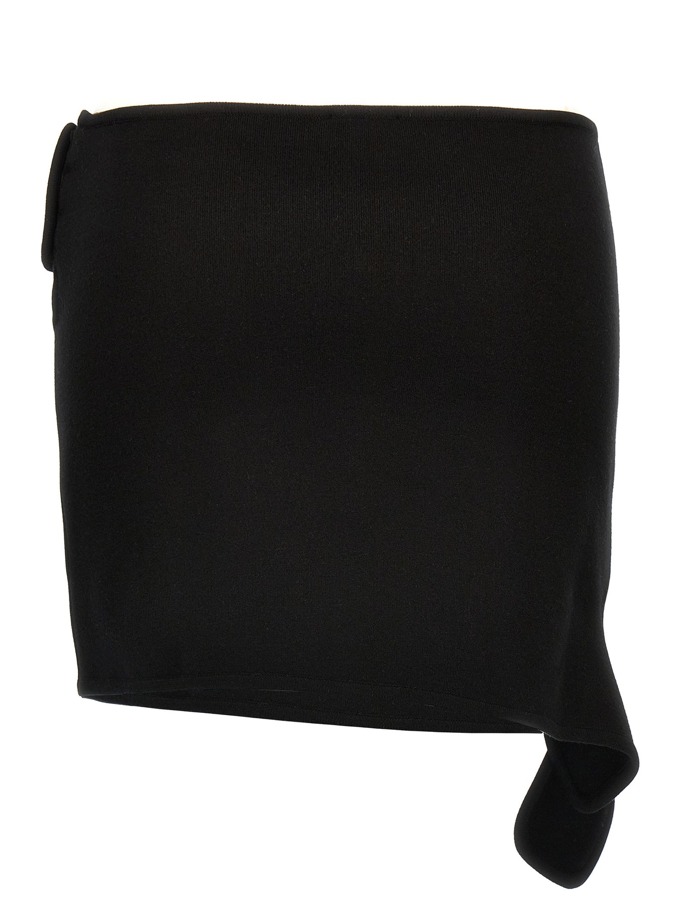 'Loop Milano' knitted mini skirt, 'cut out' detail on the side with hooks, tone-on-tone side logo embroidery.