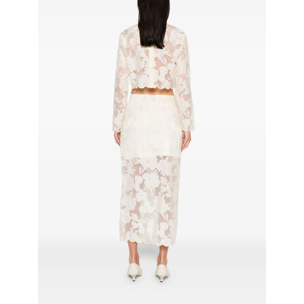 vanilla floral design scalloped hem long sleeves sheer finish round neck