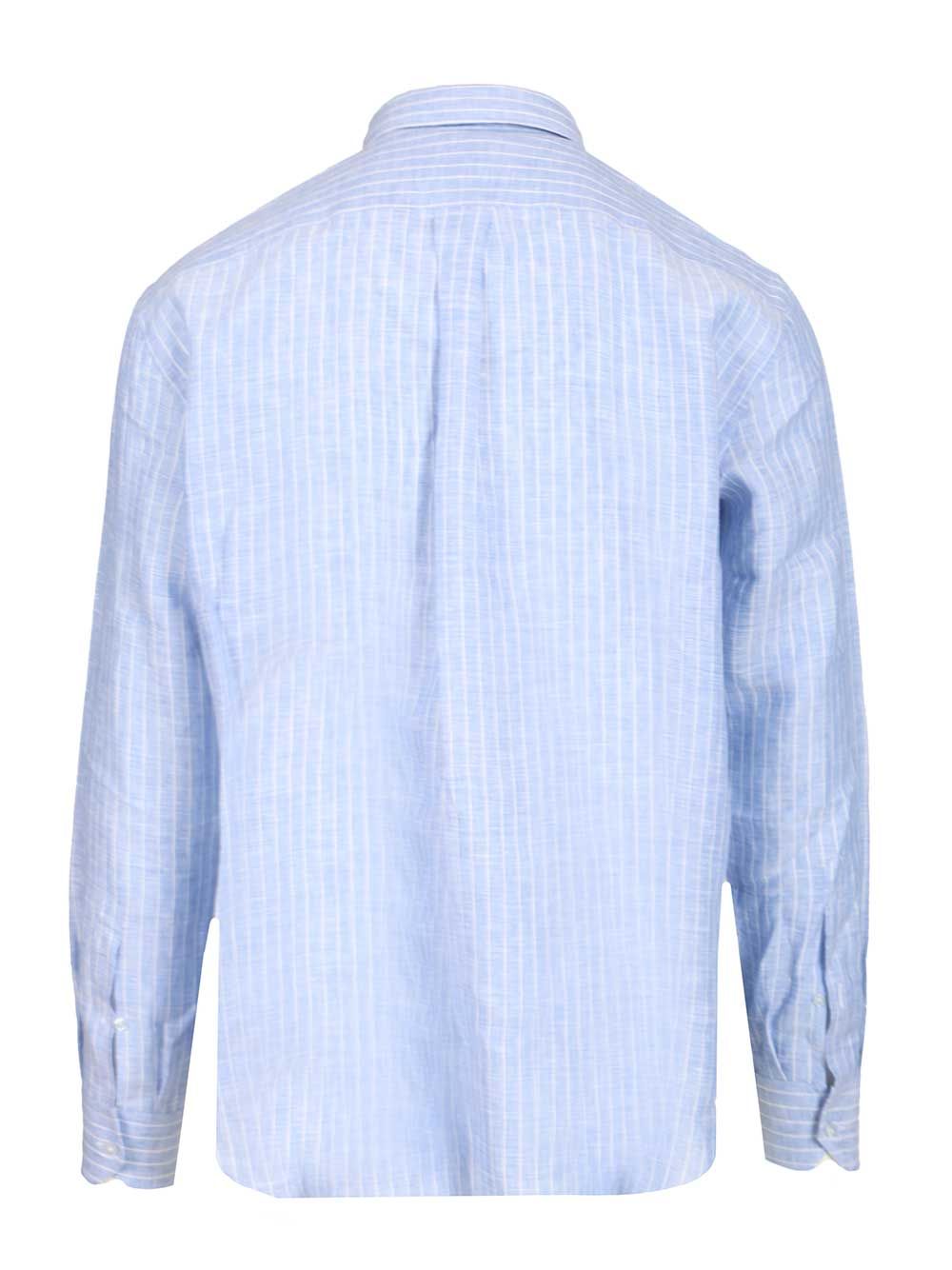 Striped linen shirt with button-down collar, patch pocket with embroidered logo