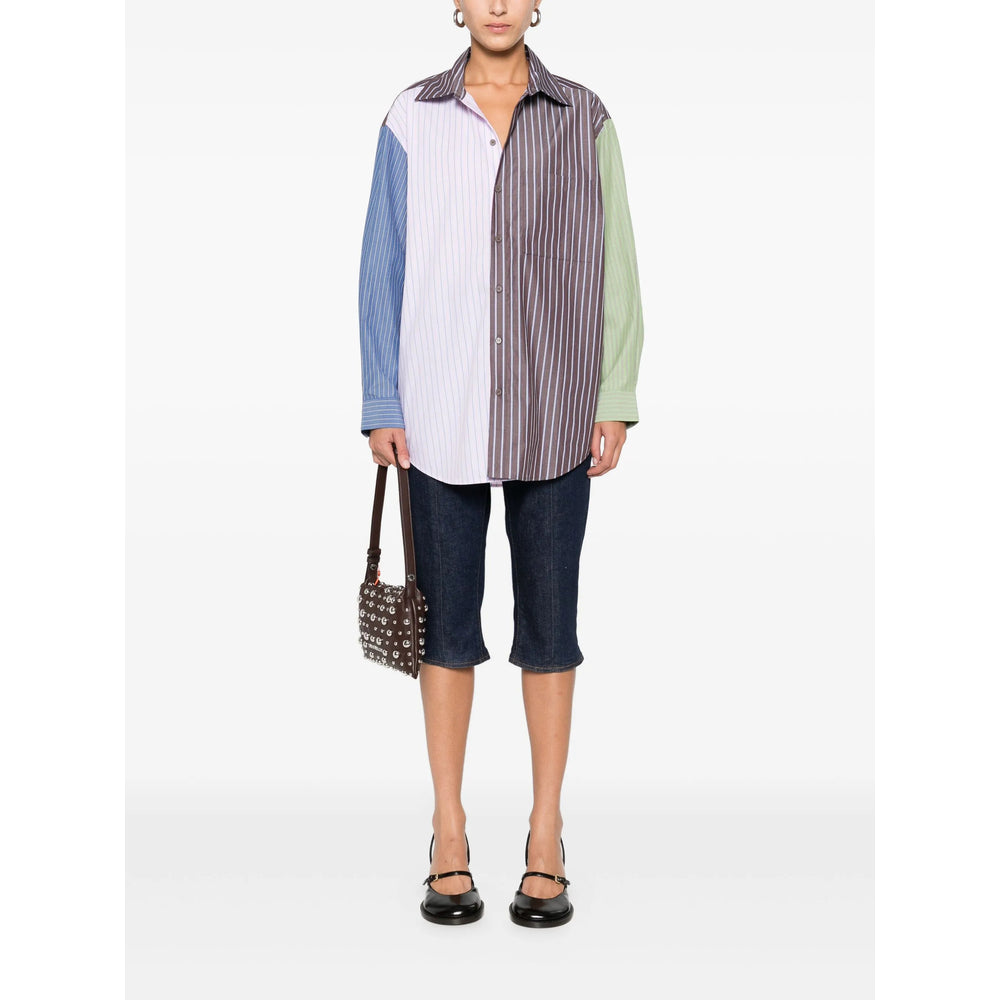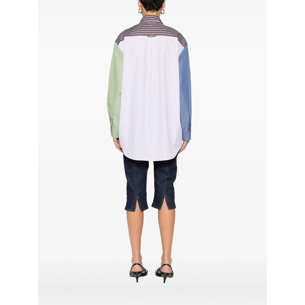 red striped pattern panelled design long sleeves button fastening chest pocket