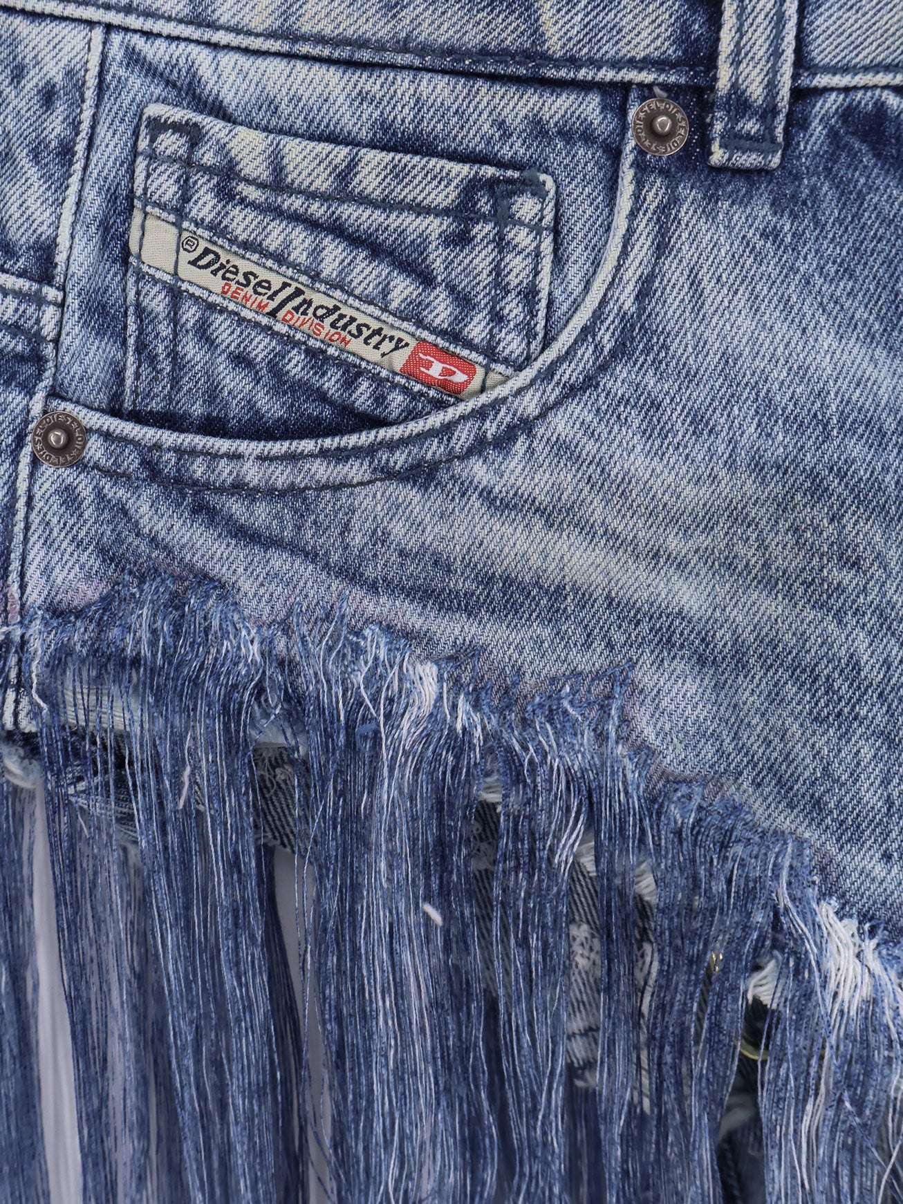 SKU: A181450CMBM_01 - Zip and button closure five pockets logo patch on the frontal pocket destroyed effect fringes 100% cotton