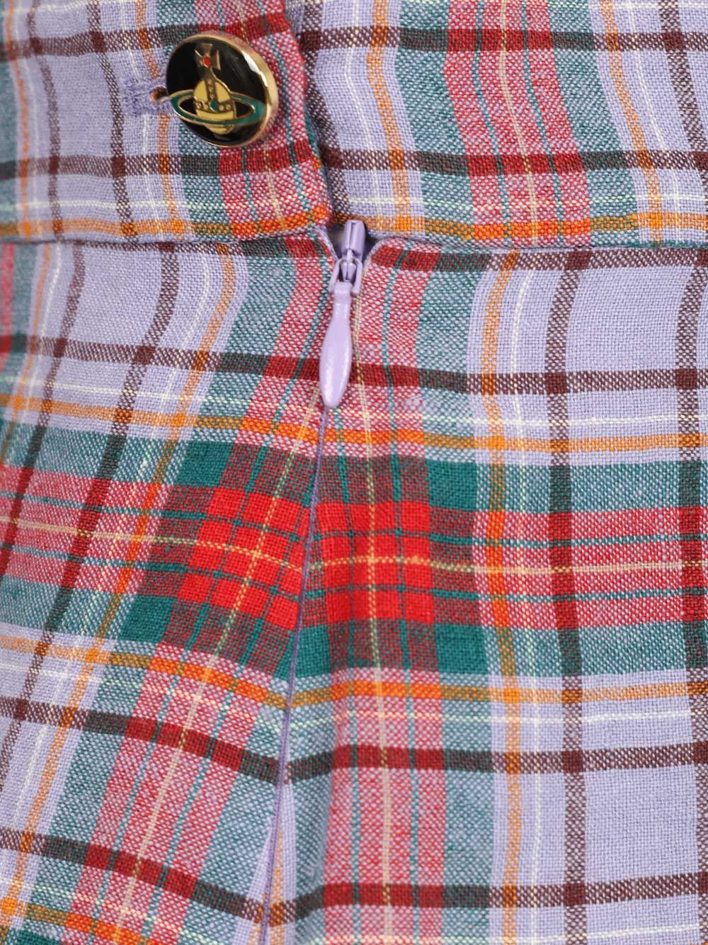 Linen tartan mini skirt gathered on the side with button closure