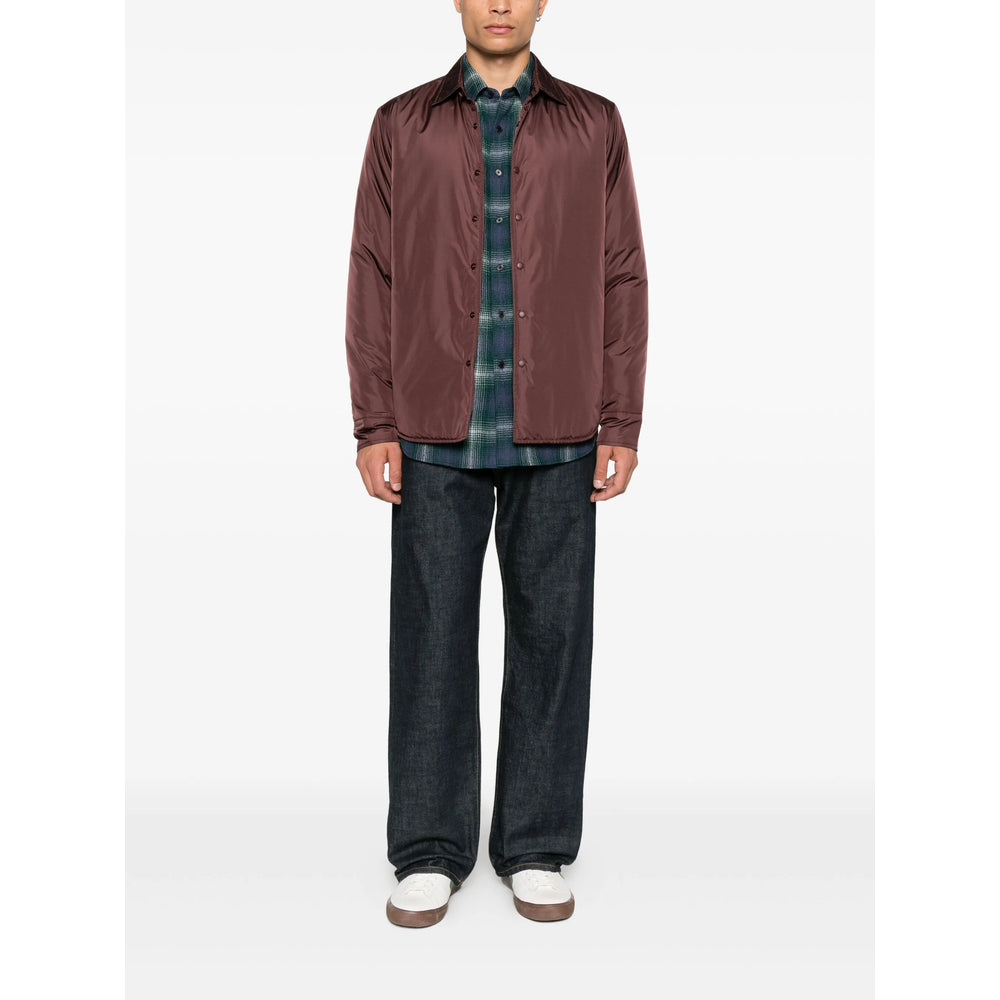brown front press-stud fastening long sleeves curved hem