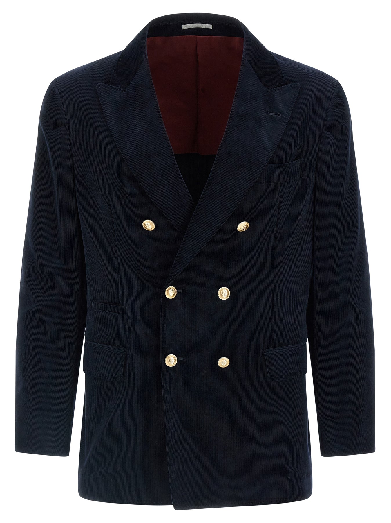 Deconstructed corduroy blazer in corduroy, one and a half breasts with 6 metal button closure, peak lapels, flap pockets, ticket pocket and chest pocket, two inner pockets with button closure and pen pocket, 'Spalla Solomeo', cuffs with opening buttonholes, half cupro lining, back vents.