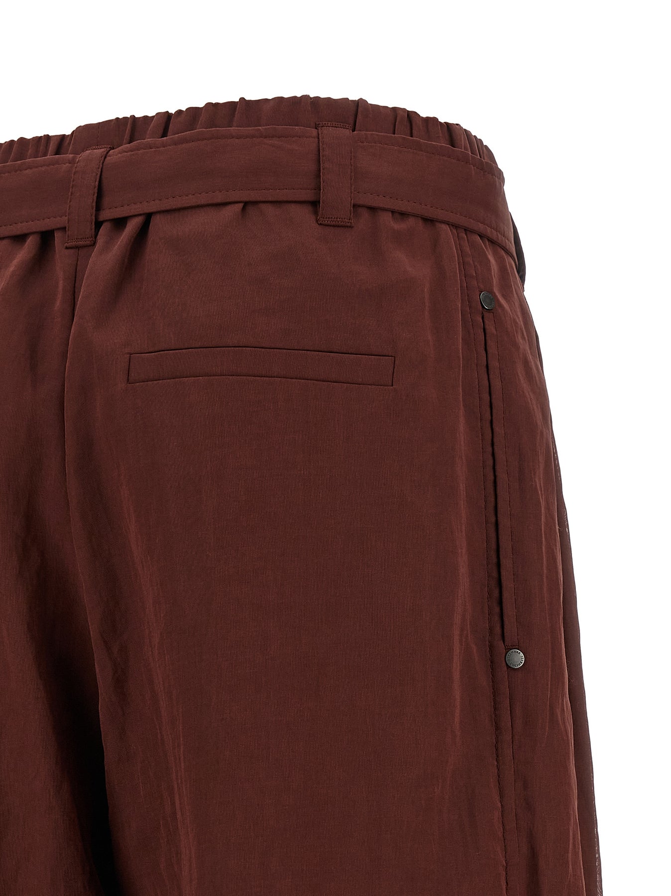 'Loose' pants in semi-transparent cotton organza with crunchy effect, Pull-up half-lining in crêpe and silk blend with high waist, flared wide leg, pleats, elastic waistband, trompe l'oeil flap, front American pockets, back welt pockets, removable matching belt with 'Monile' loop and metal buckle.