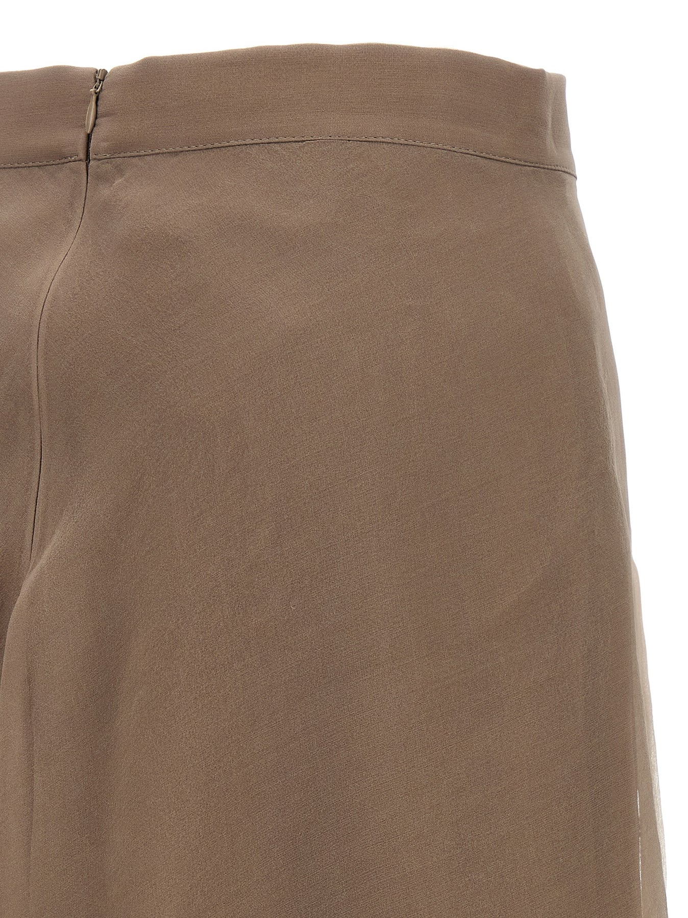 Paneled Circle' Crispy silk midi skirt with asymmetrical panel construction, flared silhouette, back zip closure, and crepe and silk blend lining.
