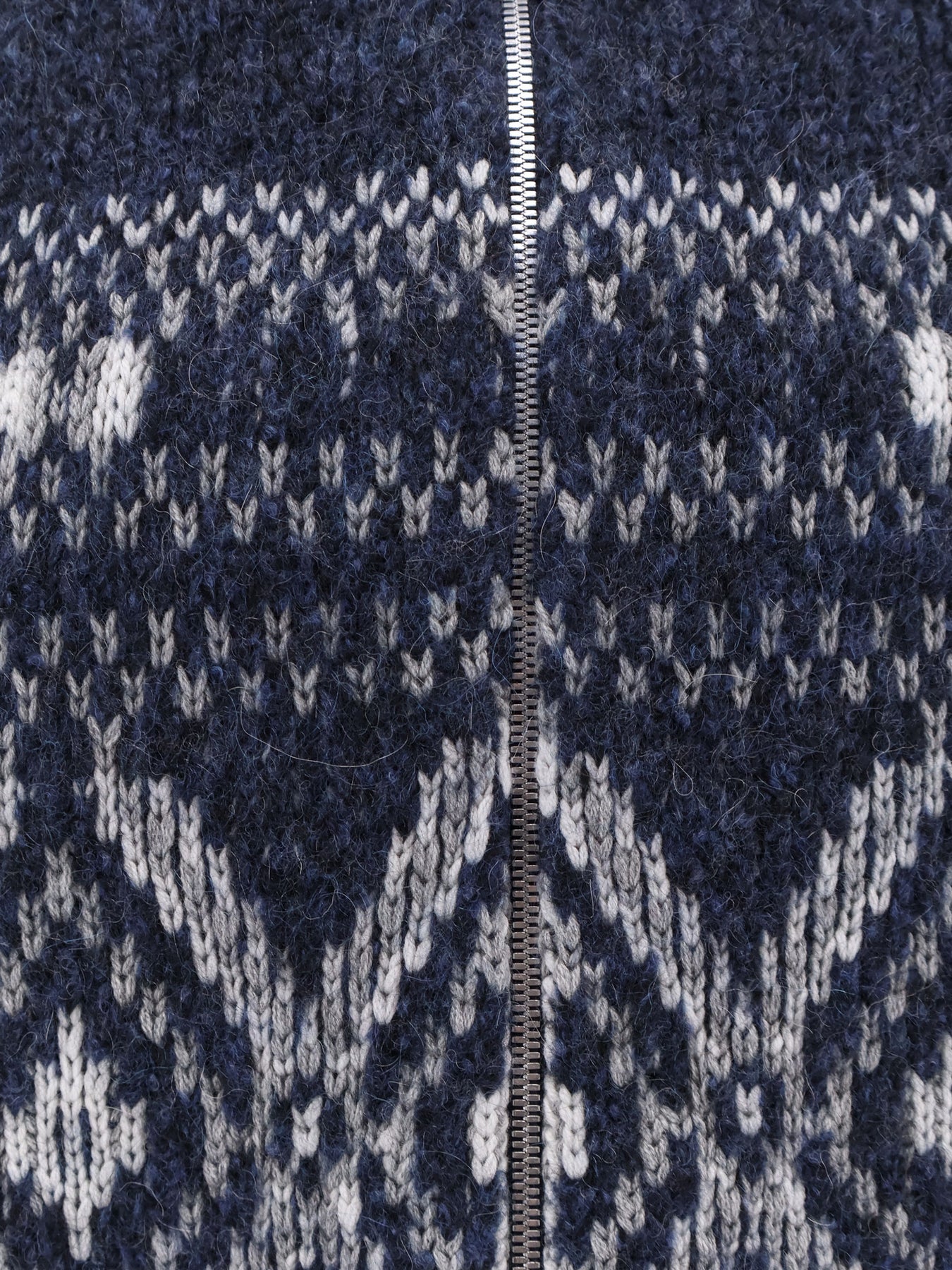 Zip closure with two-way zip Ribbed high collar Long sleeves with cuffs Lateral welt pockets Made in Italy 78% alpaca, 9% polyamide, 8% virgin wool, 4% cashmere, 1% silk SKU: M2B301706CGY89