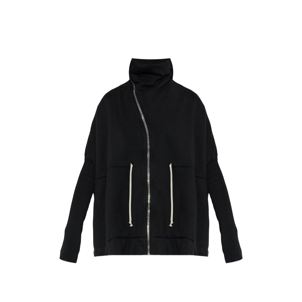 black zip fastening funnel neck drawstring detailing long sleeves straight hem