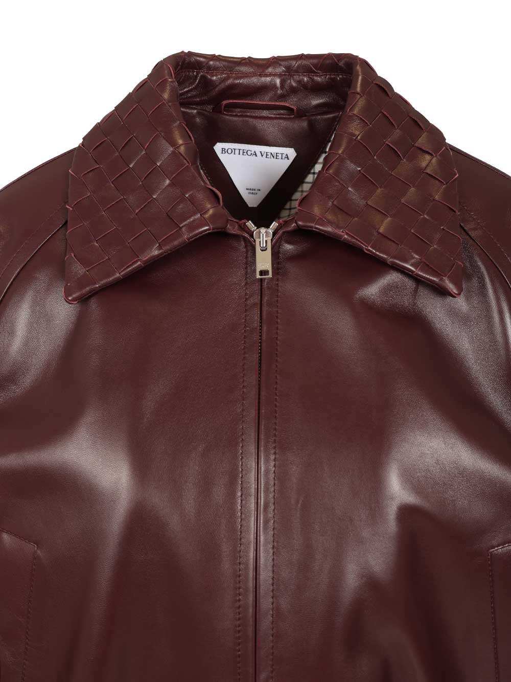 blouson jacket with woven collar, side pockets and front zip fastening