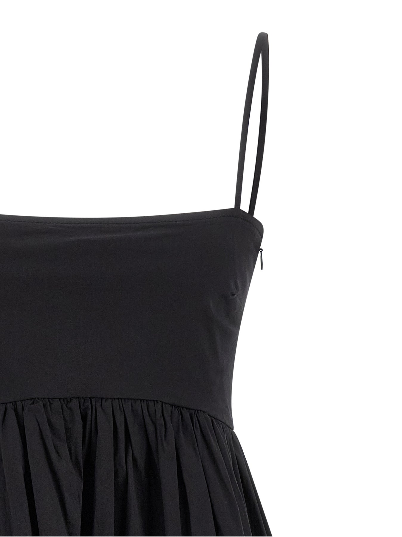'Black Mini Frill' cotton dress with square neckline, front and back ruffles, thin straps, sleeveless, back smock stitch, side zip closure. SUSTAINABLE: This product is made with organic cotton.