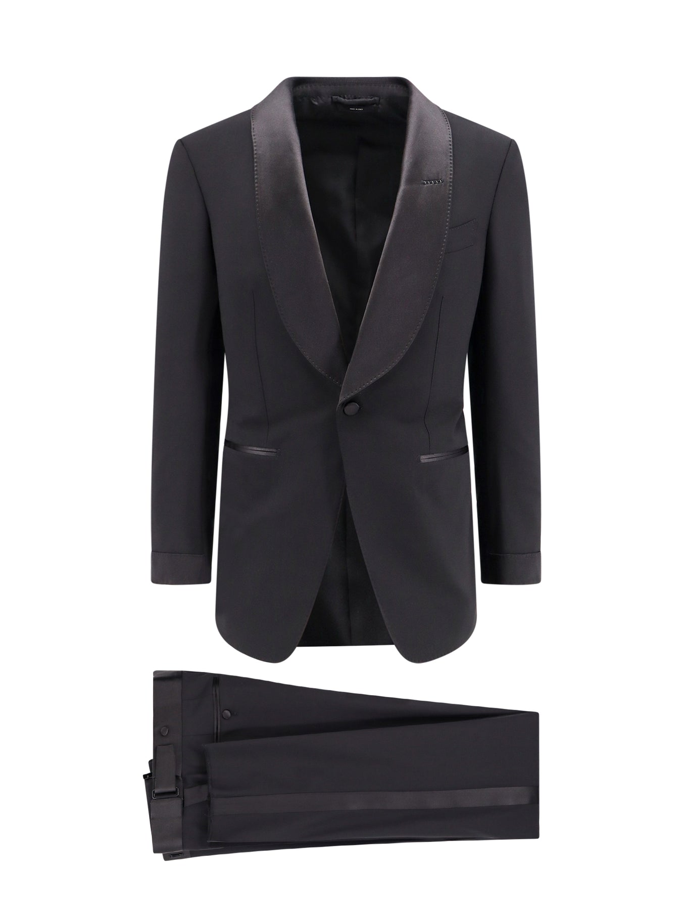 SKU: 2EAHQ1WES01_LB999 - Blazer with single covered button rounded satin lapel with stitching trousers with satin profiles and adjustable straps made in italy 96% wool 4% elastane
