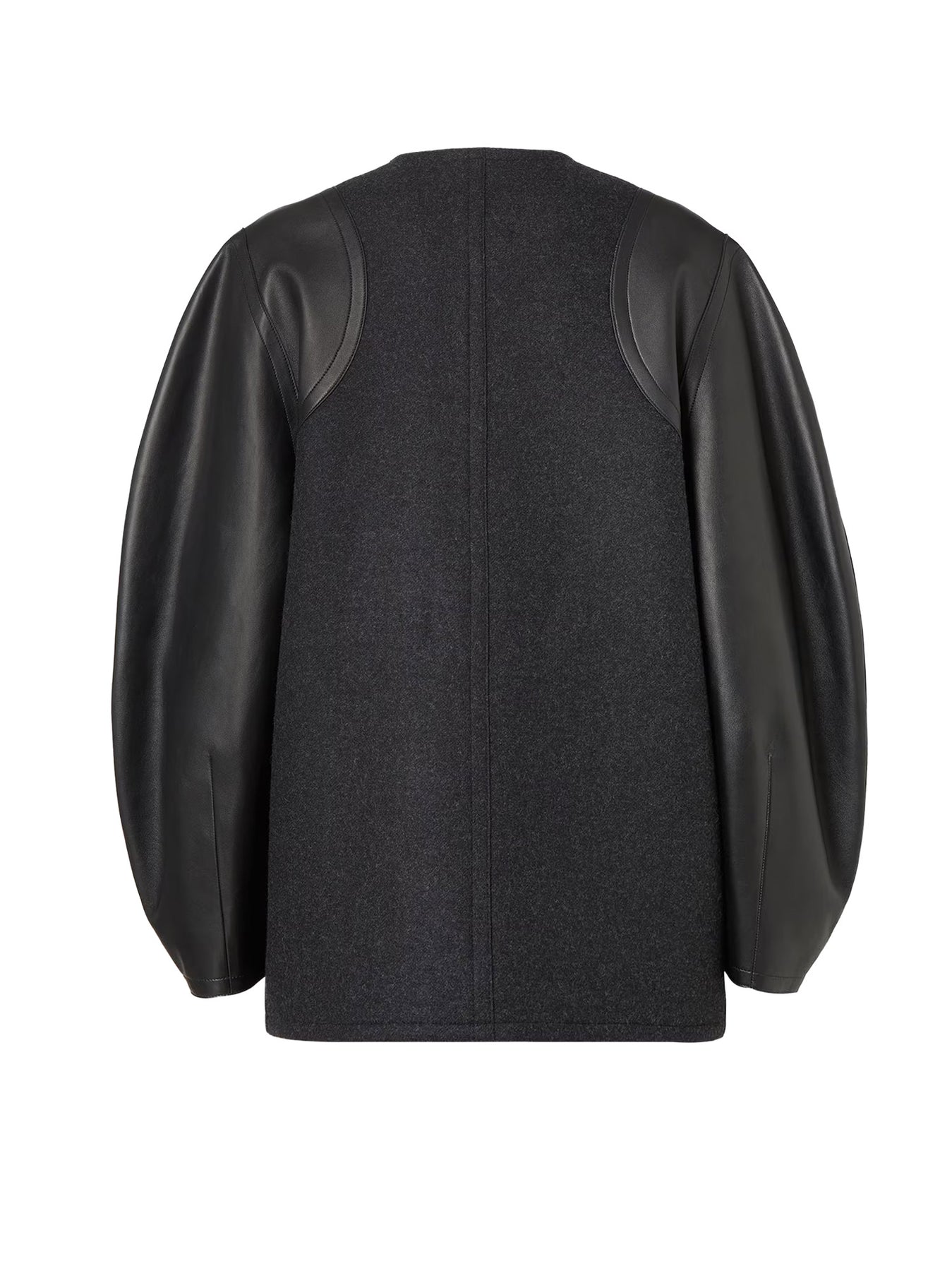 Crew-neck Hidden closure with covered buttons Front patch pockets Cocoon line Leather belt with FF buckle Virgin Wool/Leather SKU: FJ7650AJ0KF0TAZ