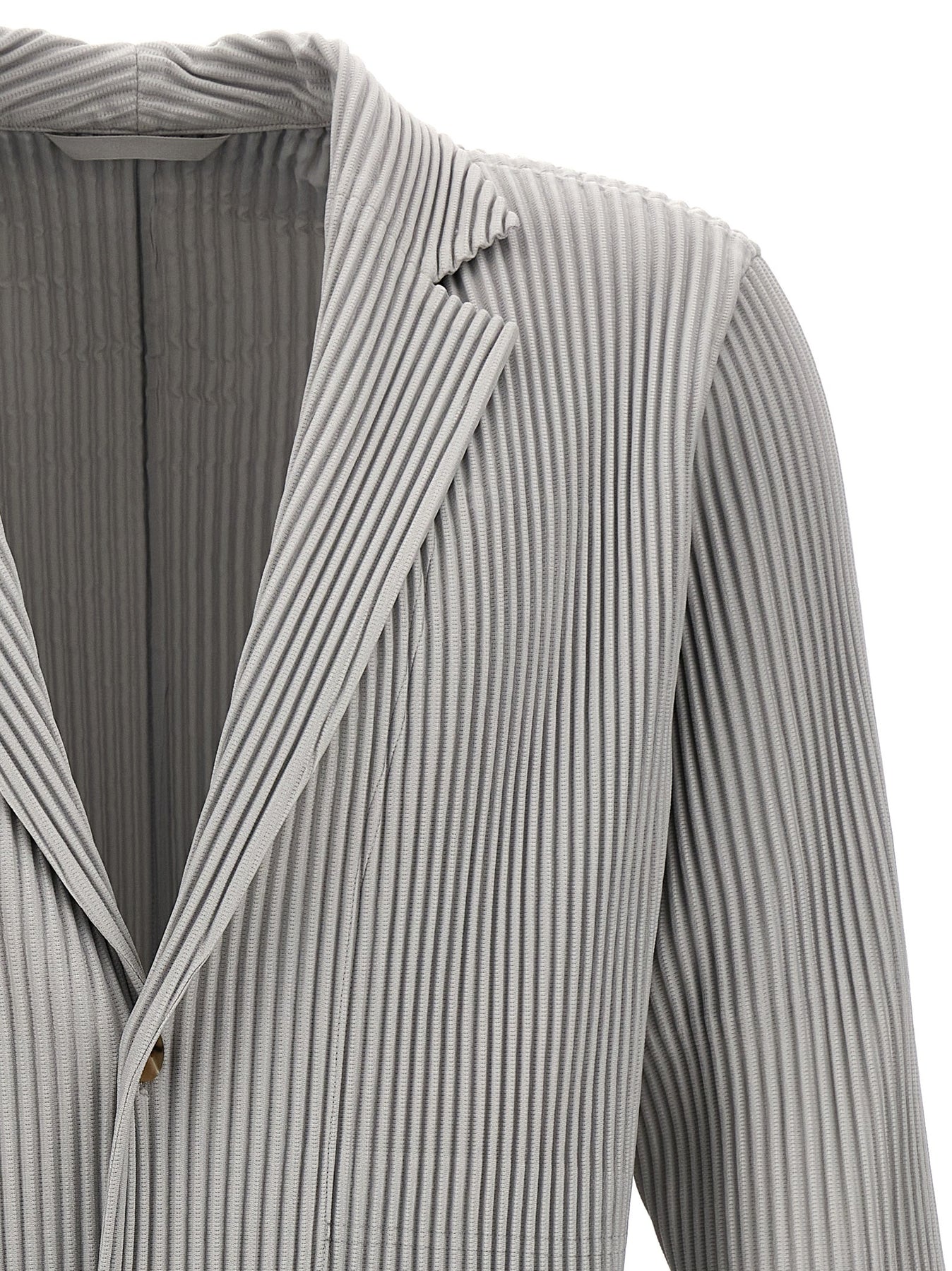 Homme Plisse' Issey Miyake Single-Breasted Pleated Blazer - Gray | 3fe856a85739e967e30e1e87fa8d37b8f3fbff35