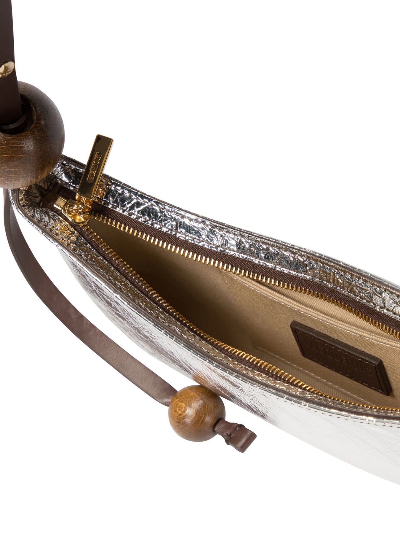 The "Le Bisou Perle" shoulder bag by Jacquemus is the perfect accessory for those seeking a touch of elegance and sophistication. Made of fine leather, this bag is designed for the modern woman who loves to stand out with class. With a unique and compact design, it is a style statement that will enrich any outfit. || - Adjustable leather shoulder strap with buckle and large bead - Zipper closure - Interior patch pocket - Logo and gold metal details - Fully lined with cotton - Dimensions: 27x10.5x2 cm || For a chic and sophisticated look, pair "Le Bisou Perle" with a cocktail dress and pointed pumps. For a casual occasion, opt for wide-leg jeans and a silk blouse. Also perfect with a midi skirt and fitted top for a cocktail in the city.