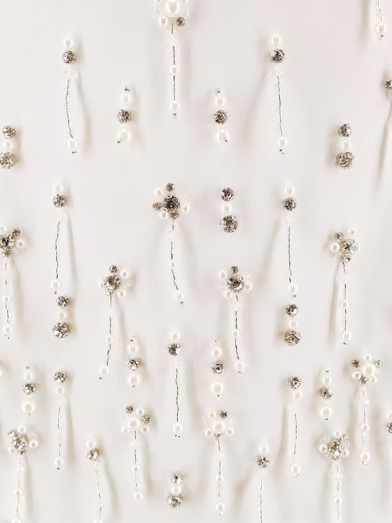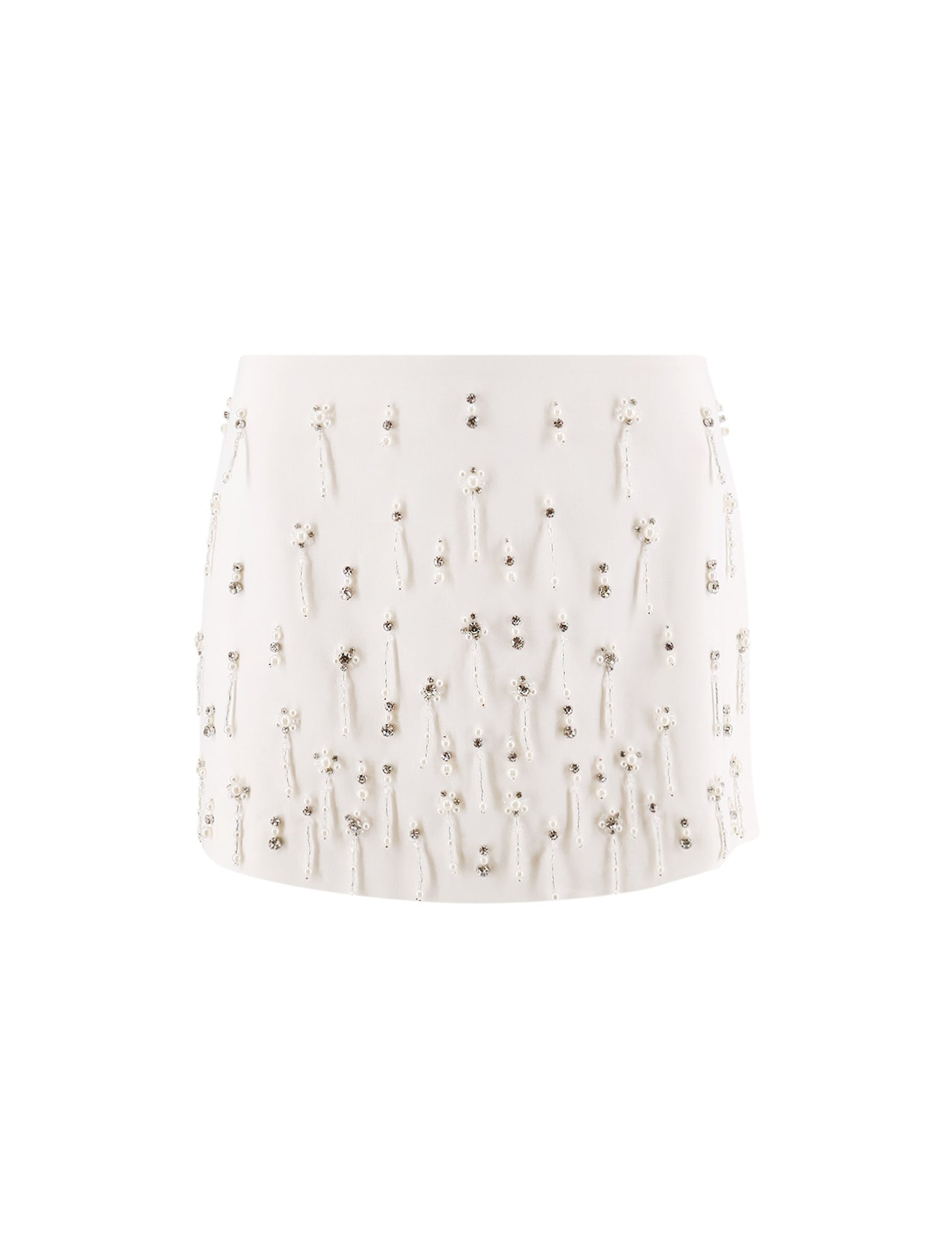 Back zip closure Pearl and crystal appliqués Flared Lined 92% polyester, 6% viscose, 2% elastane Lining: 55% polyester, 45% viscose SKU: 105496A2PNZ04