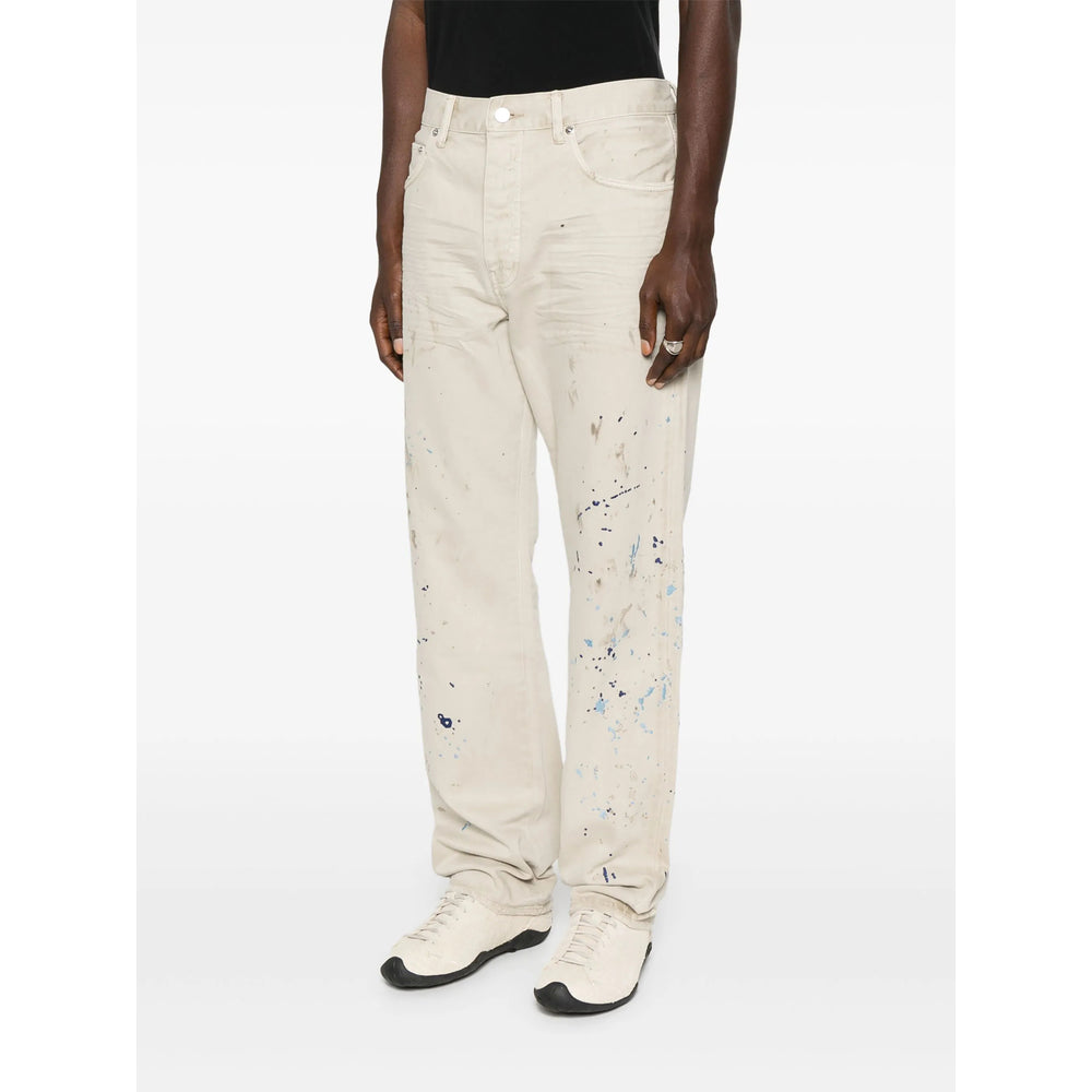 beige paint splatter detail front button fastening belt loops classic five pockets