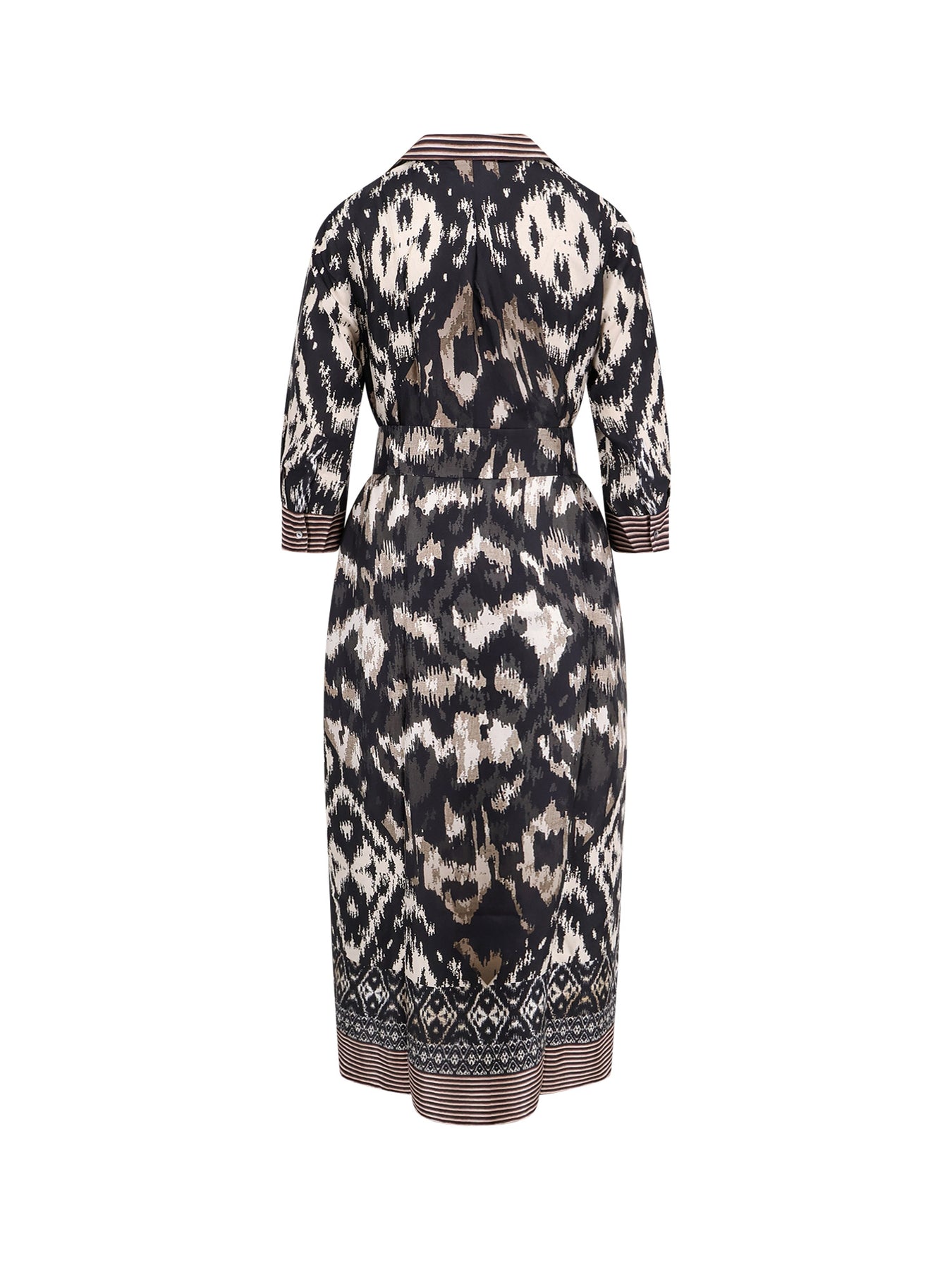 Button closure Three-quarter sleeves with buttoned cuffs Removable waist belt Made in Italy 100% silk SKU: ALOESAB11899516289101