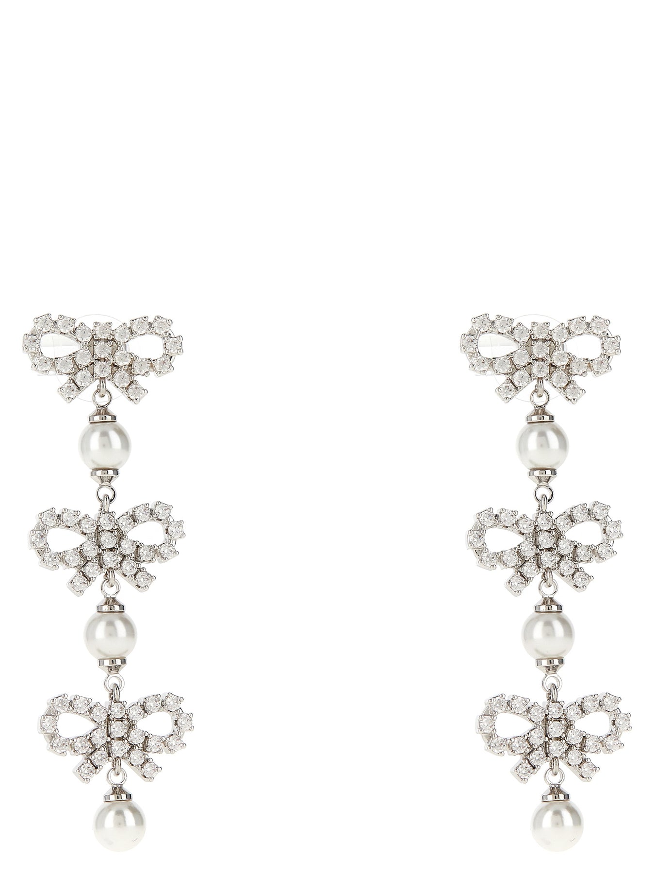 'Micro Bow Pearl Tiered' earrings in silver-plated brass with micro crystals interspersed with fake pearls, butterfly closure. ITEM CANNOT BE RETURNED
