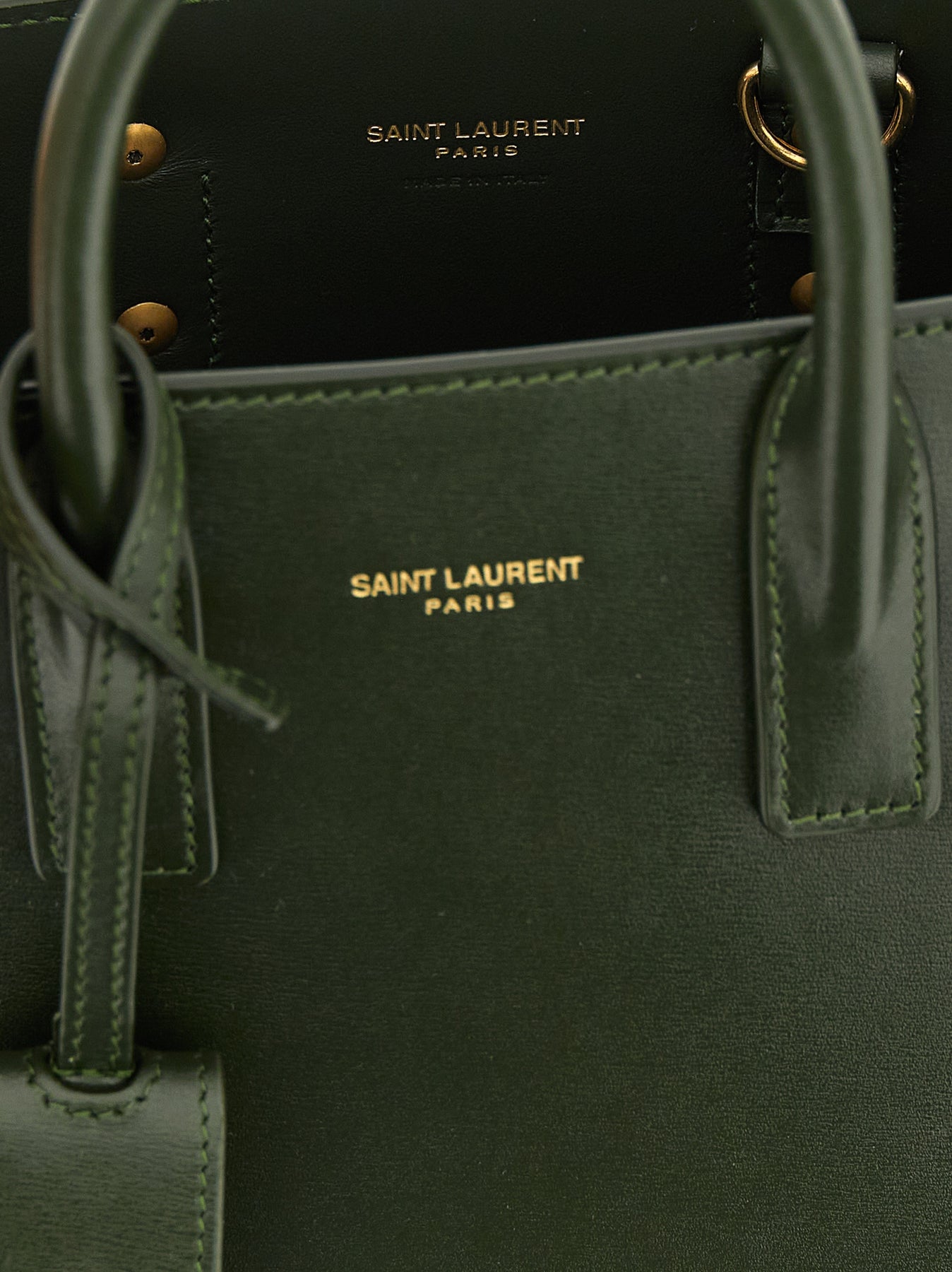 Nano 'Sac De Jour' smooth leather handbag with front embossed logo, side gussets with straps, double fixed tubular handle, rigid base with metal feet, removable metal padlock detail, adjustable and removable shoulder strap.