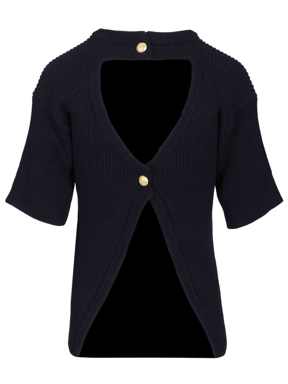 Seafarer cotton "Clichet" sweater, ribbed pullover, high neck, keyhole opening on the back, elbow-length sleeves, two decorative gold buttons on the back.