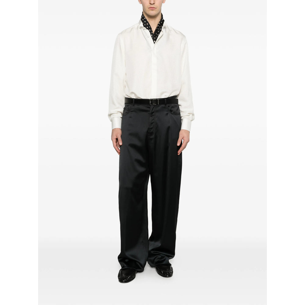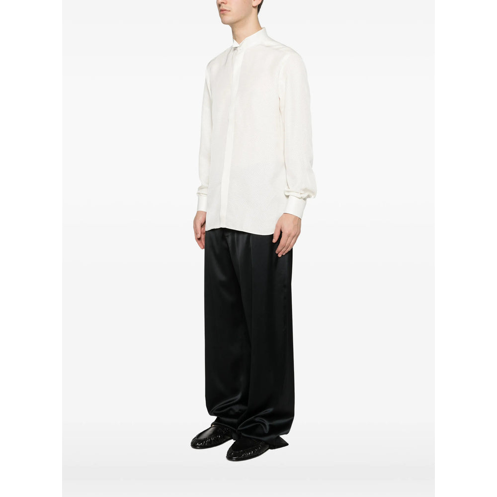 white band collar button fastening long sleeves buttoned cuffs perforated dot pattern