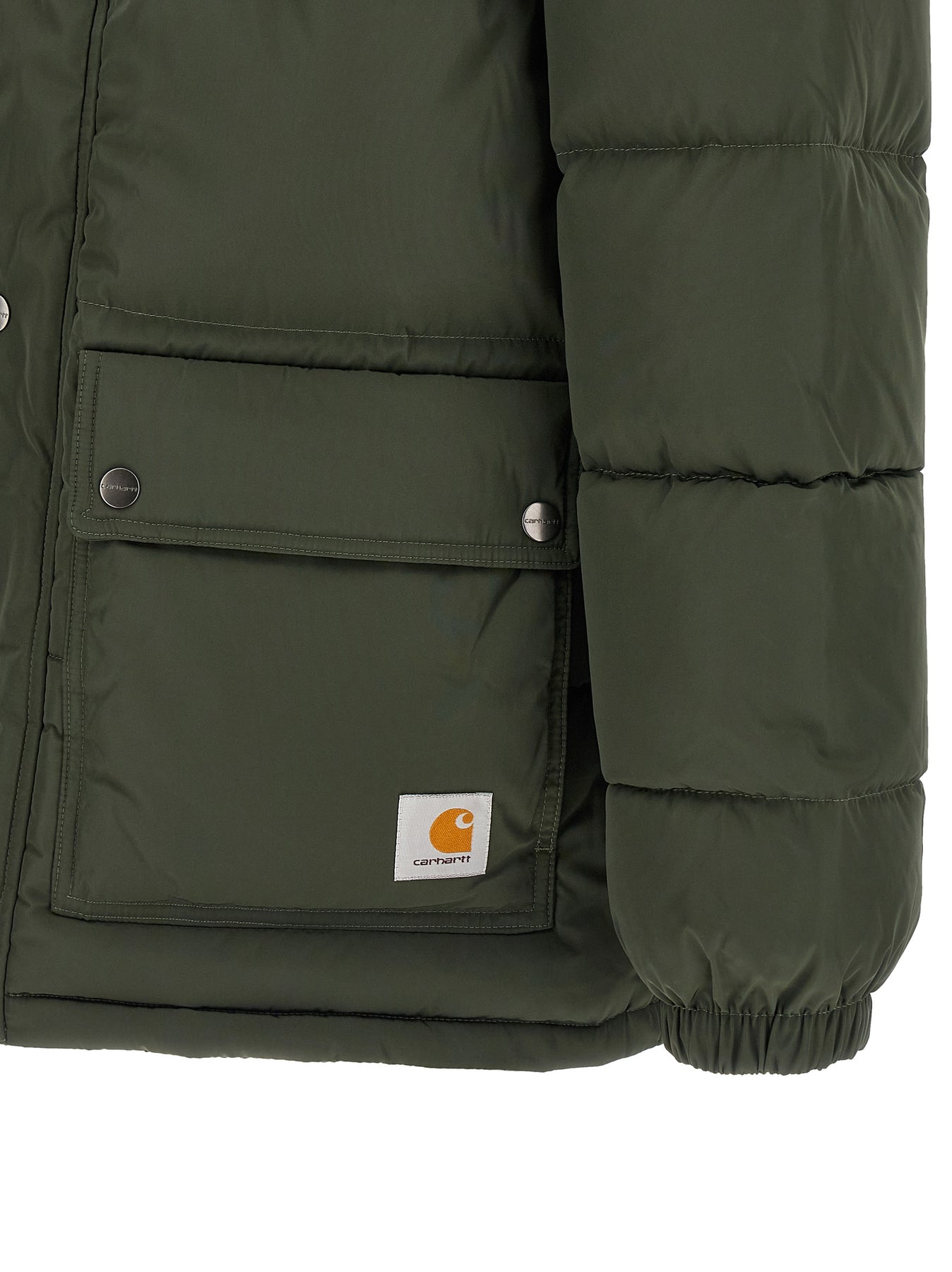'Brent Jacket' padded and quilted nylon down jacket, removable hood, front pockets with logo patch, front zip closure, long sleeves with elastic cuffs.
