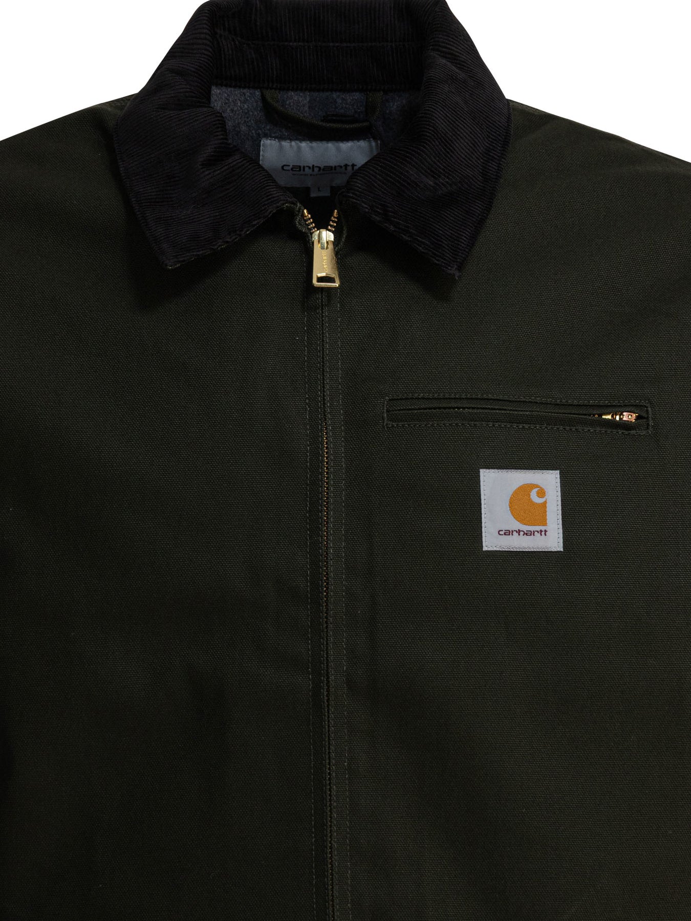Carhartt WIP "Detroit" jacket, constructed of Dearborn canvas composed of 340-gram organic cotton. The construction features a wide, streamlined silhouette with long sleeves lined with nylon taffeta. The collar is made of velvet, and the front closure is provided by a custom two-way zipper. The hem and cuffs have adjustable elastic, designed for added functionality. || - Woven logo on the chest - Long sleeves - Striped inner lining - Sleeves lined with nylon taffeta - Velvet collar - Front closure with double-slider zipper - Adjustable elastic cuffs and hem - Eco-friendly product - Relaxed fit