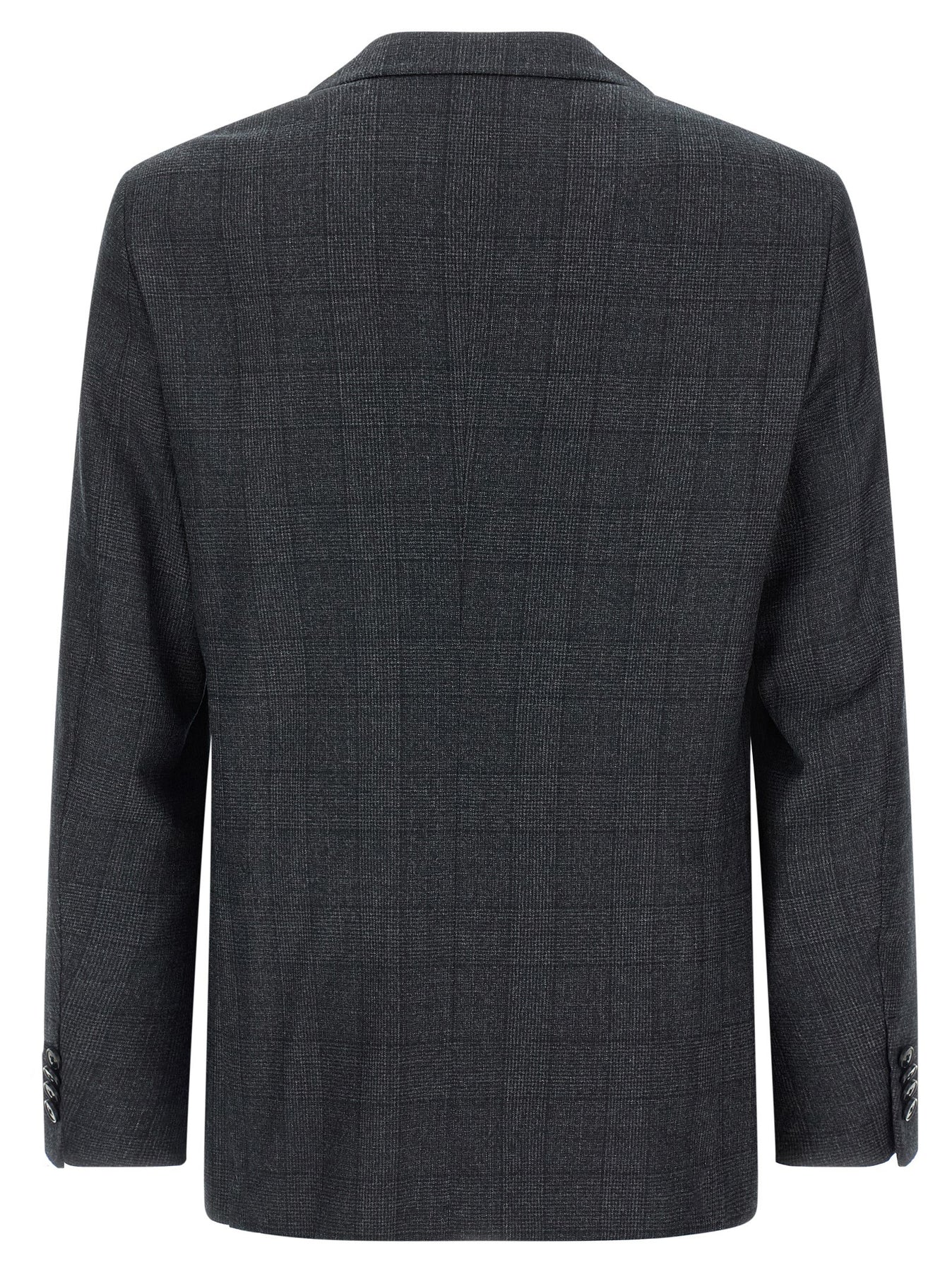One hundred and twenty thousand patterned wool dress Prince of Wales plaid consisting of single-breasted blazer with front button closure, mirror lapels, cupro lining, chest pocket, flap pockets, slightly padded shoulder strap, cuffs with opening buttonholes, back slits and regular flat front pants, stretched pleat, front 'americane' pockets, back welt pockets, zip and front button closure.