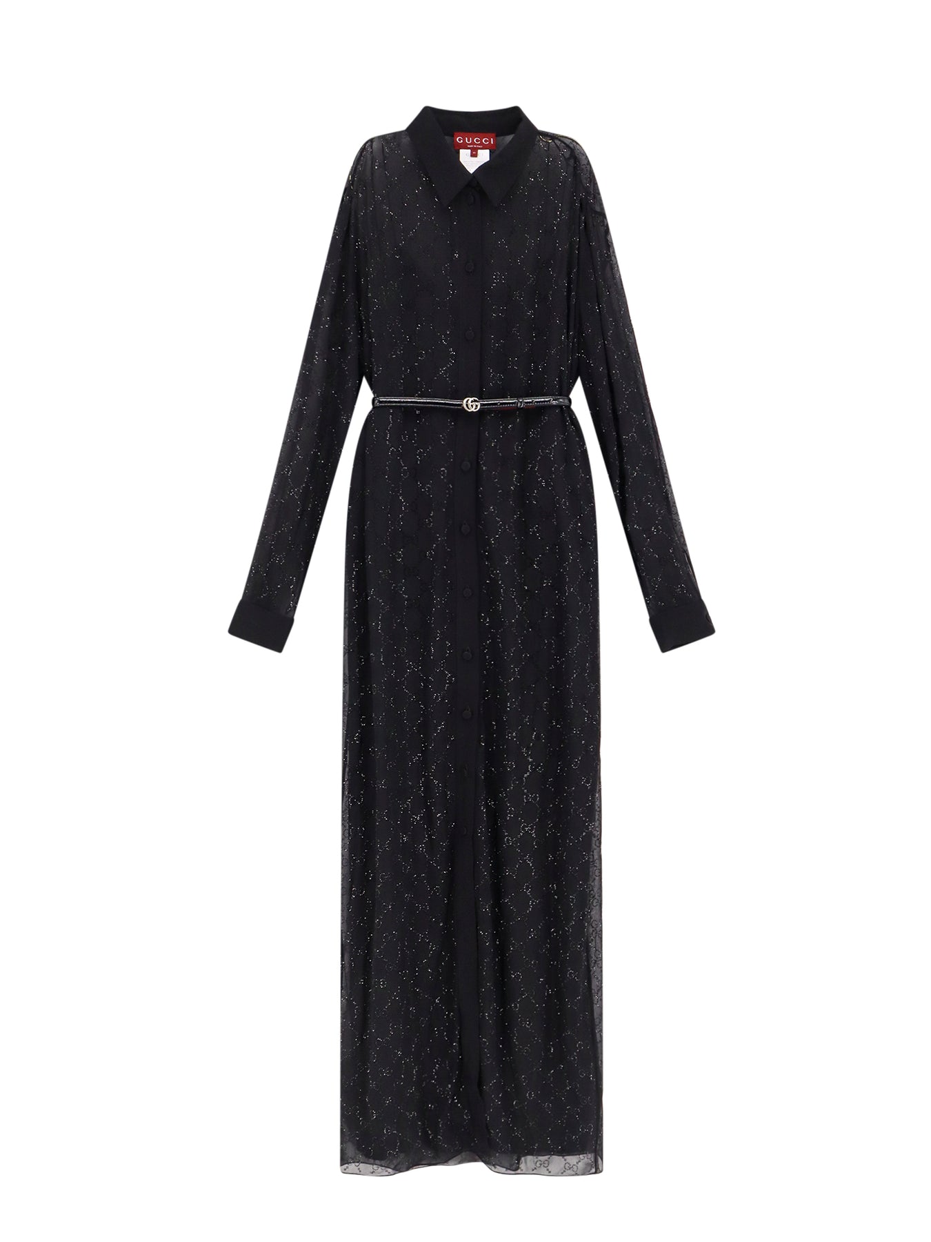 SKU: 790234Z8BTX_1000 - Closure with buttons leather removable and adjustable belt with gg buckle removable petticoat made in italy 100% silk