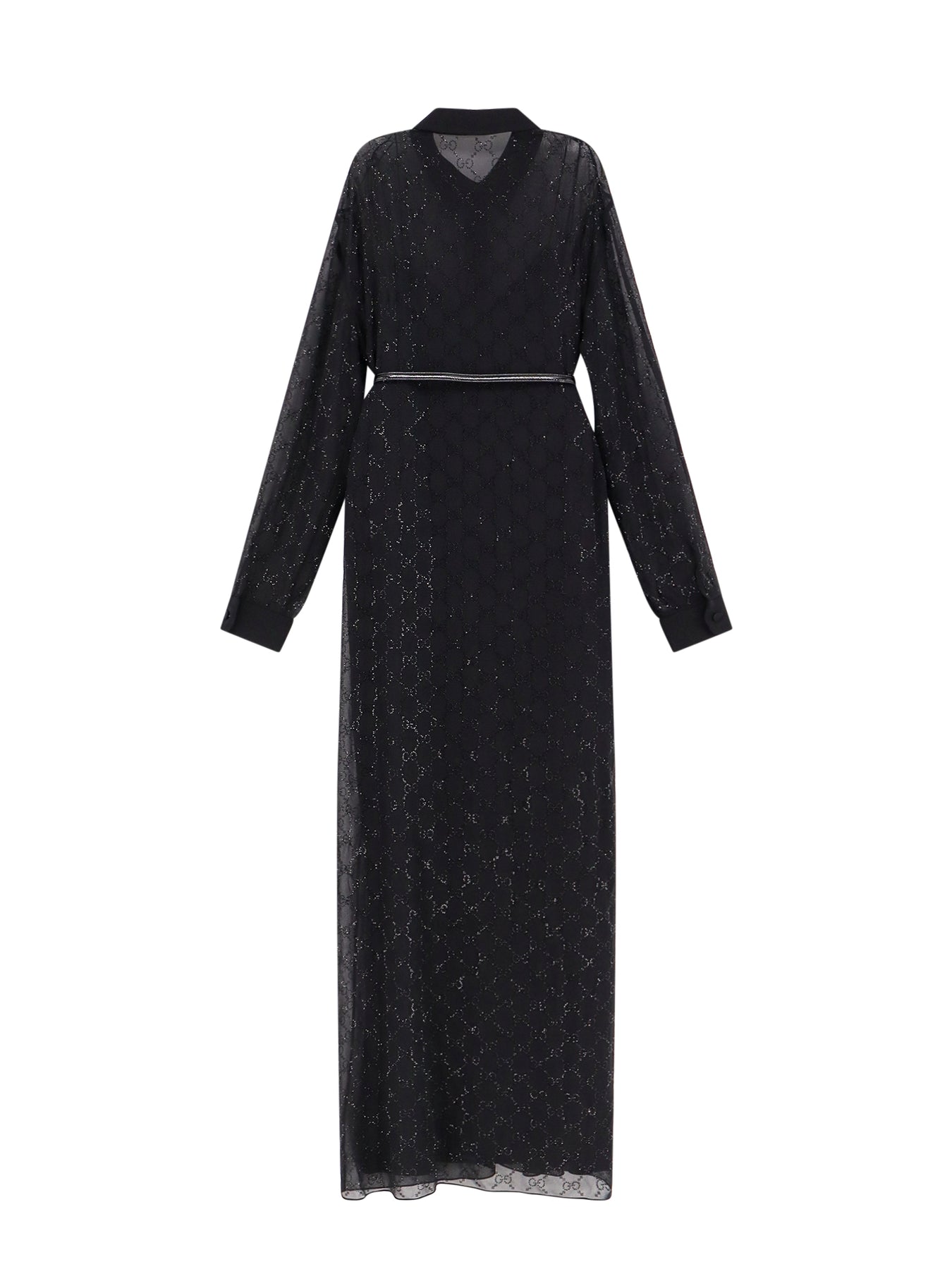 Silk Chemisier Dress With All-Over Gg Motif And Rhinestones