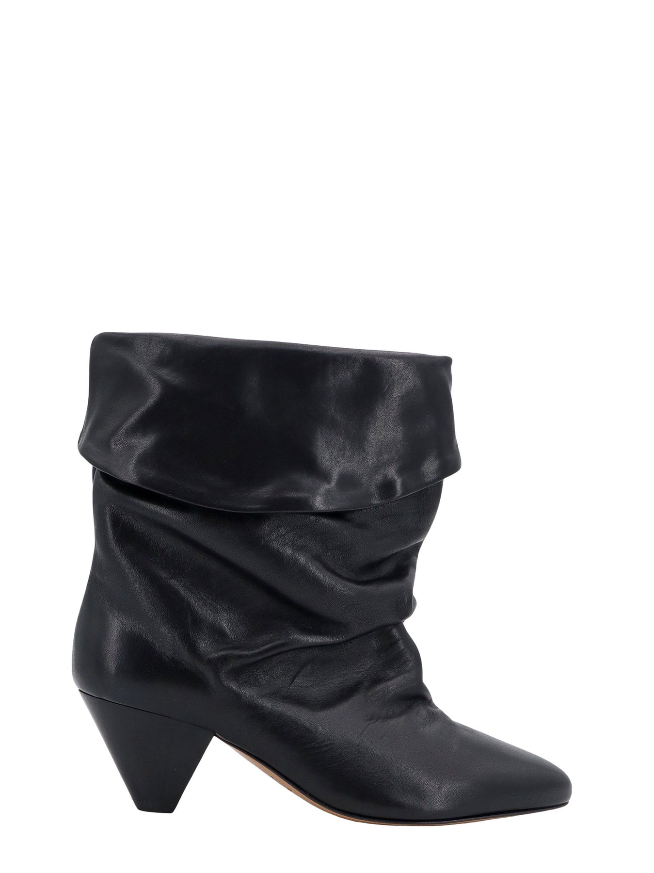 SKU: BO0126FAB3A04S_01BK - Draped leg detail with fold cone heel made in italy leather