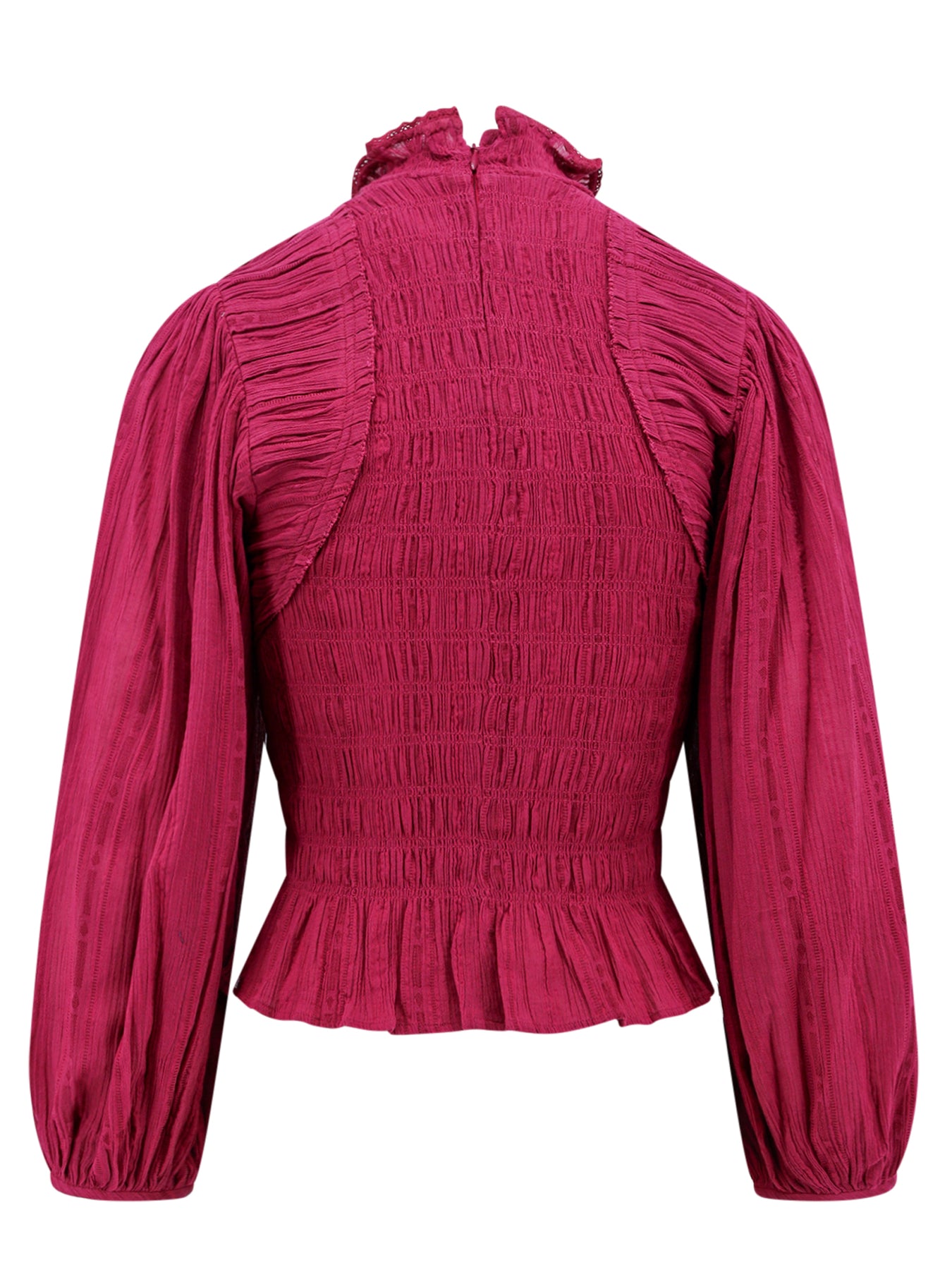 SKU: HT0222FAA3J09E_40RY - Closure with zip on the back high collar with embroidered profile balloon long sleeve draped motif 90% cotton 10% viscose