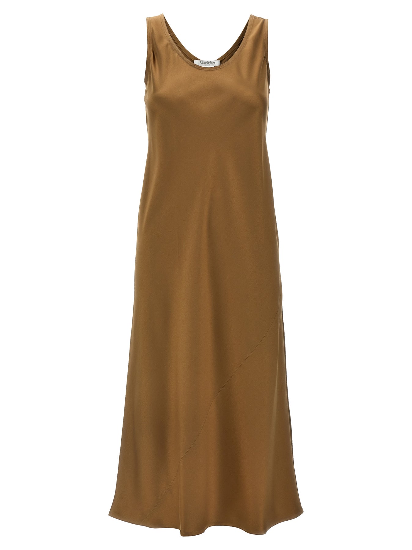 'Banio' silk dress with round neckline, slightly flared, no handfuls.