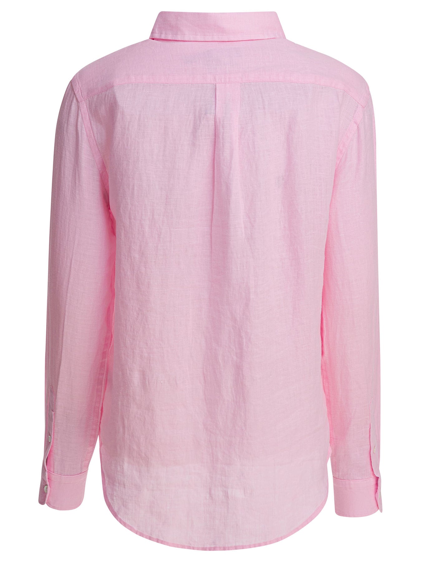 Polo Ralph Lauren classic-fit linen shirt, made of lightweight tightly woven linen, features a straight silhouette with hip length. The design includes a stabilized point collar and a center cannon with a mother-of-pearl button closure. The back yoke incorporates cannon pleats for ease of movement. The bottom turns out hemmed. The exclusive Ralph Lauren pony is applied via embroidery on the left side of the chest. || - Embroidered logo on the chest - Classic pointed collar - Long sleeves with cuffs and button closure - Front small cannon with mother-of-pearl buttons - Back yoke with pleats - Hemmed bottom - Regular fit