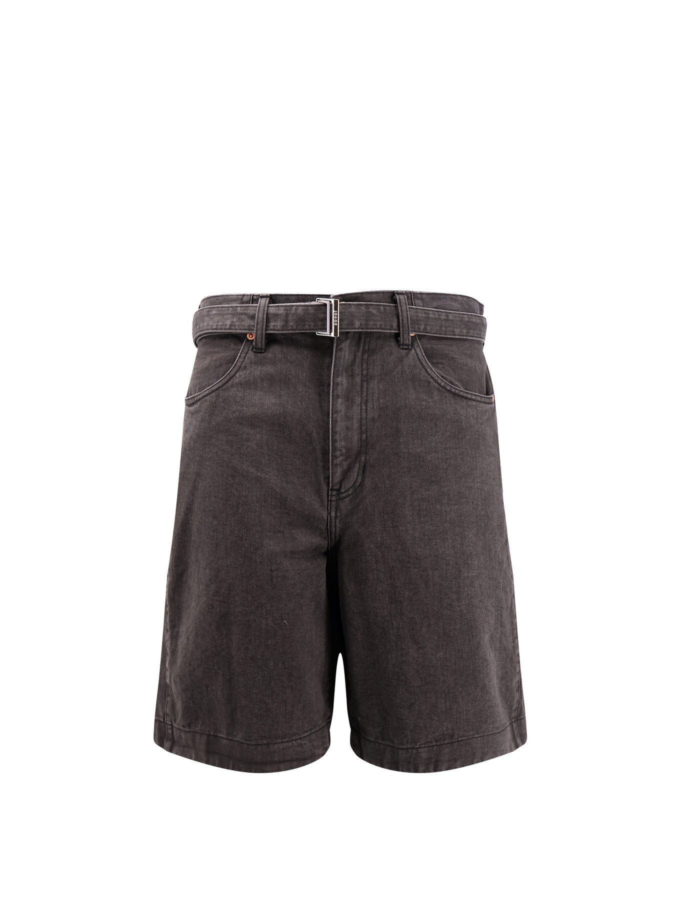 Black Denim Bermuda Shorts With Belt
