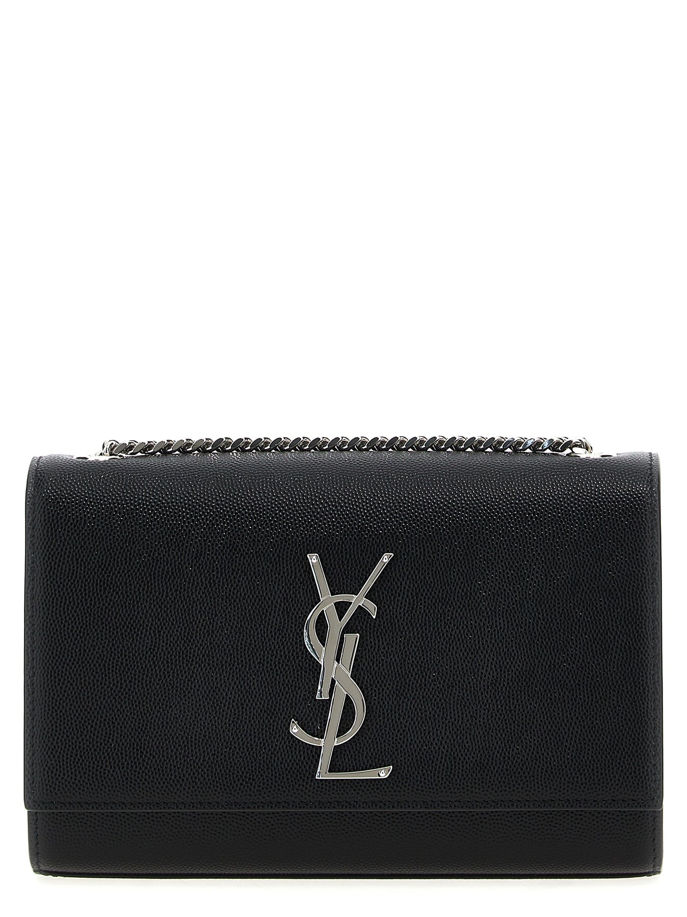 Grain de poudre leather 'Kate Small' crossbody bag, chain shoulder strap, magnetic flap closure with front metal logo applique.