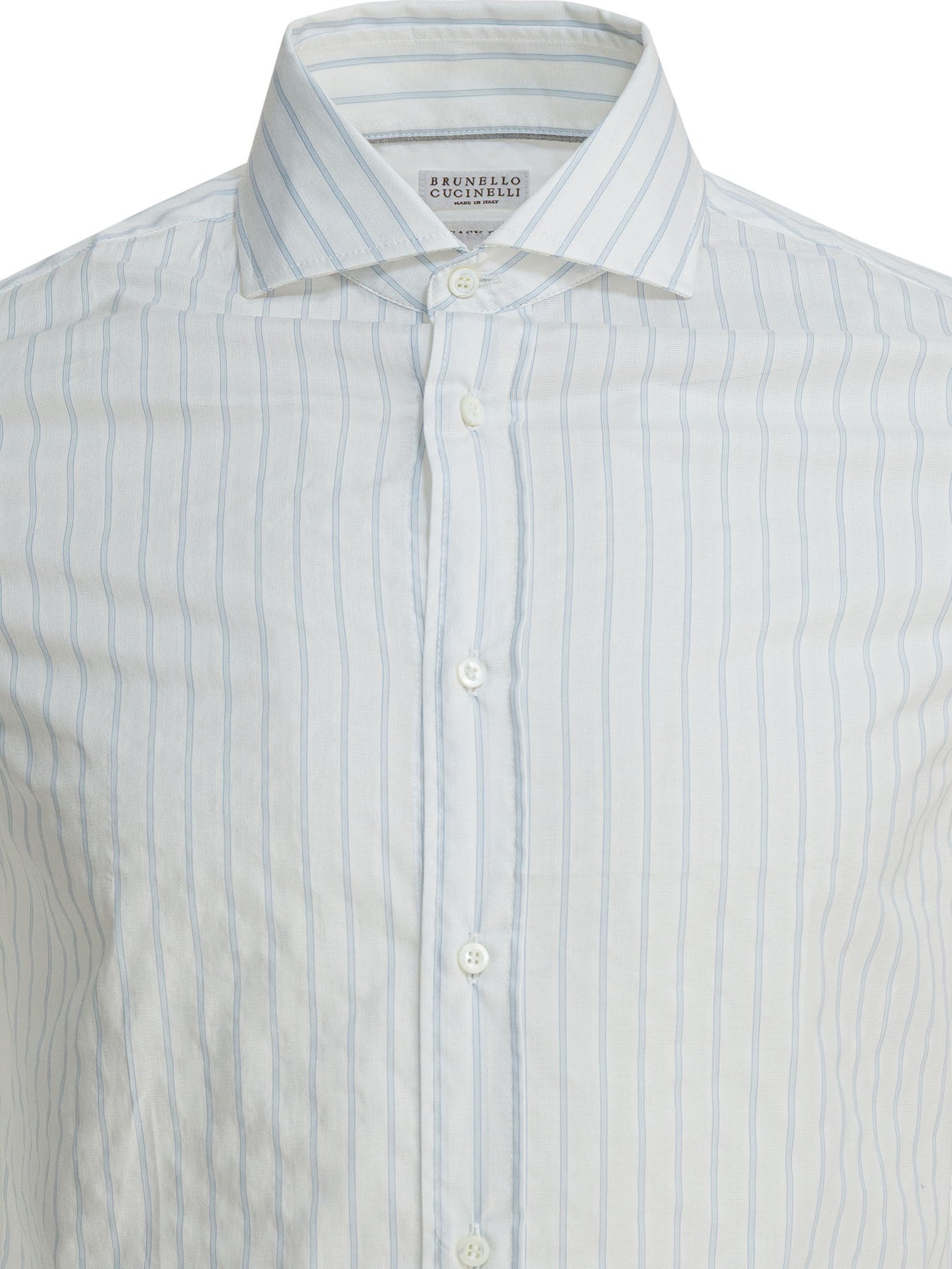 Brunello Cucinelli Cotton Striped Shirt Shirts - White | 656586c1a2b045ff2597545b6ef0f234188f4290
