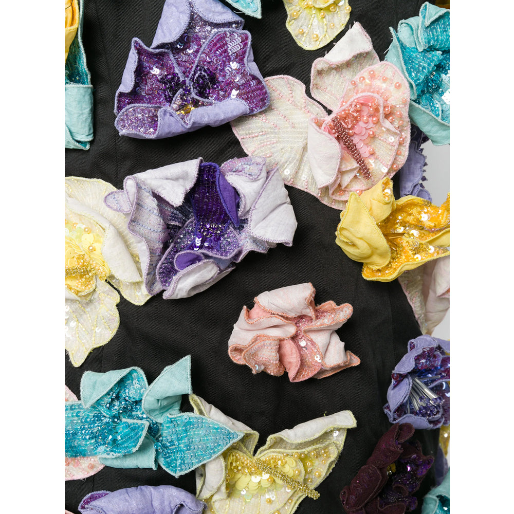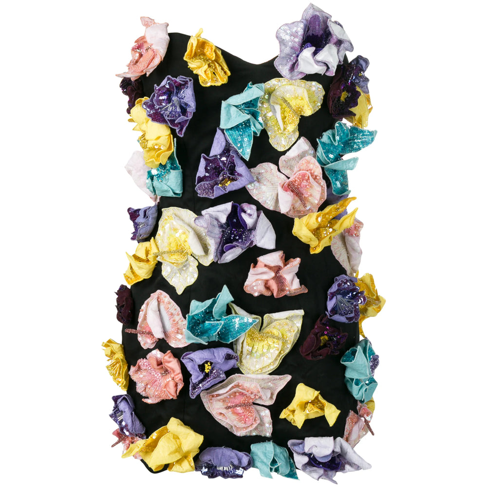 Multicoloured cotton-blend strapless embellished mini dress from Attico featuring a strapless design, a sweetheart neckline, a fitted silhouette, floral appliqués and a side zip fastening.